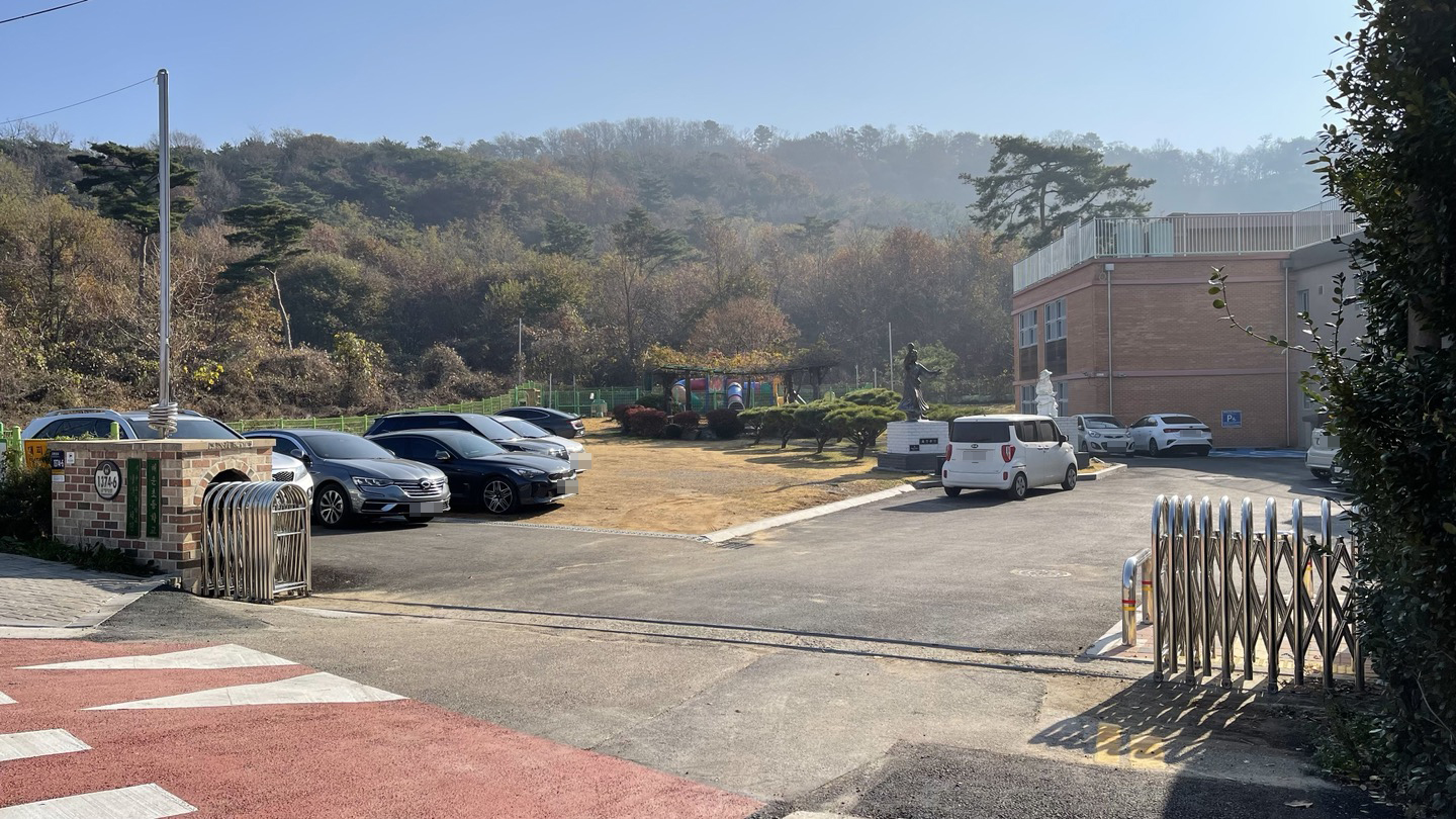 해운초등학교 앞 버스정류장 뒤쪽에 있는 주차공간 모습입니다.