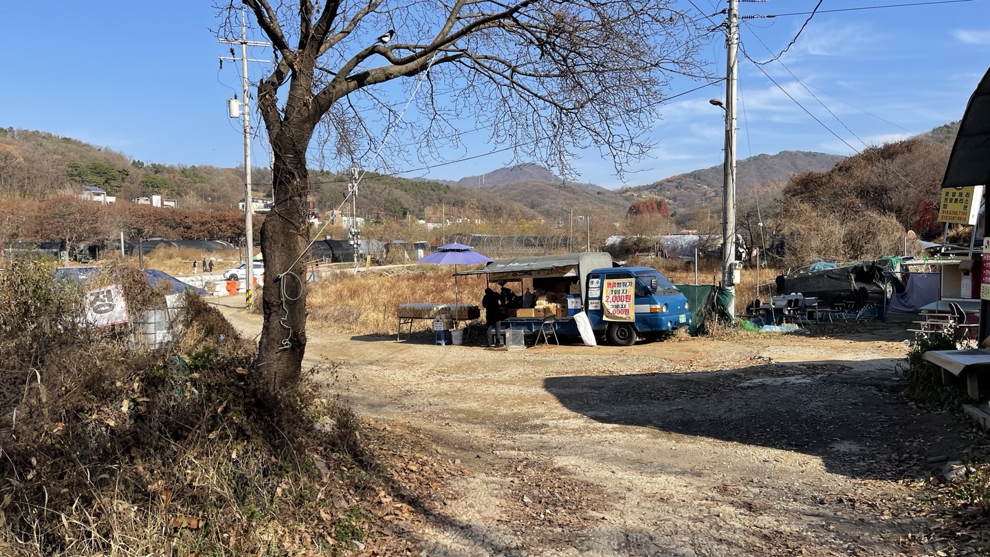 이 곳에 화장실도 있고 뻥튀기 파는 트럭도 한 대 있습니다.