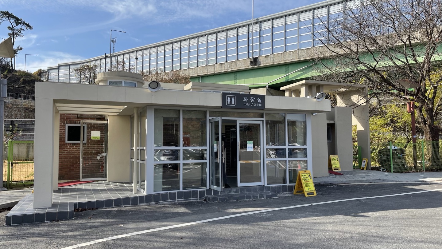 주차장 입구쪽에 화장실이 있습니다.