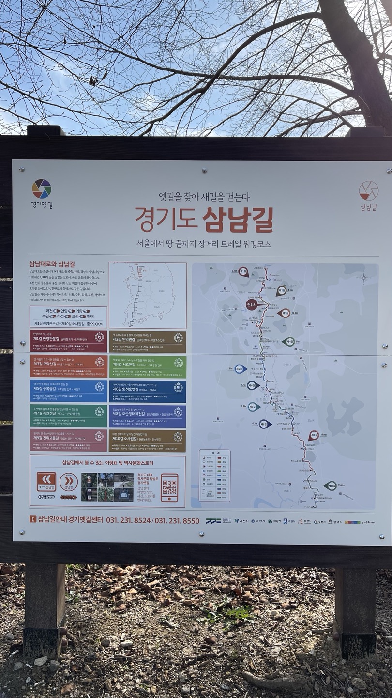 경기도에는 과천부터 평택까지 이어지는 '삼남길'이라는 도보여행 코스가 조성되어 있는데요, 모두 10개의 코스로 구성되어 있습니다.