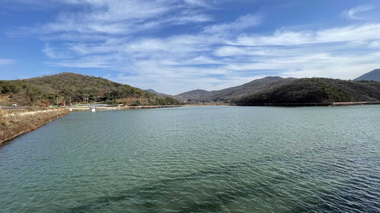주차장에서 제방으로 이어진 계단을 올라가면 탁 트인 백운호수의 풍경이 한 눈에 펼쳐집니다.