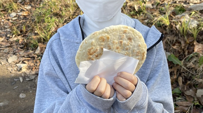 걸은지 1시간 정도 지났고 점심시간이 되어서 배가 슬슬 고파지더라고요. 구운호떡 2개 너도 먹고 나도 먹고 냠냠냠~