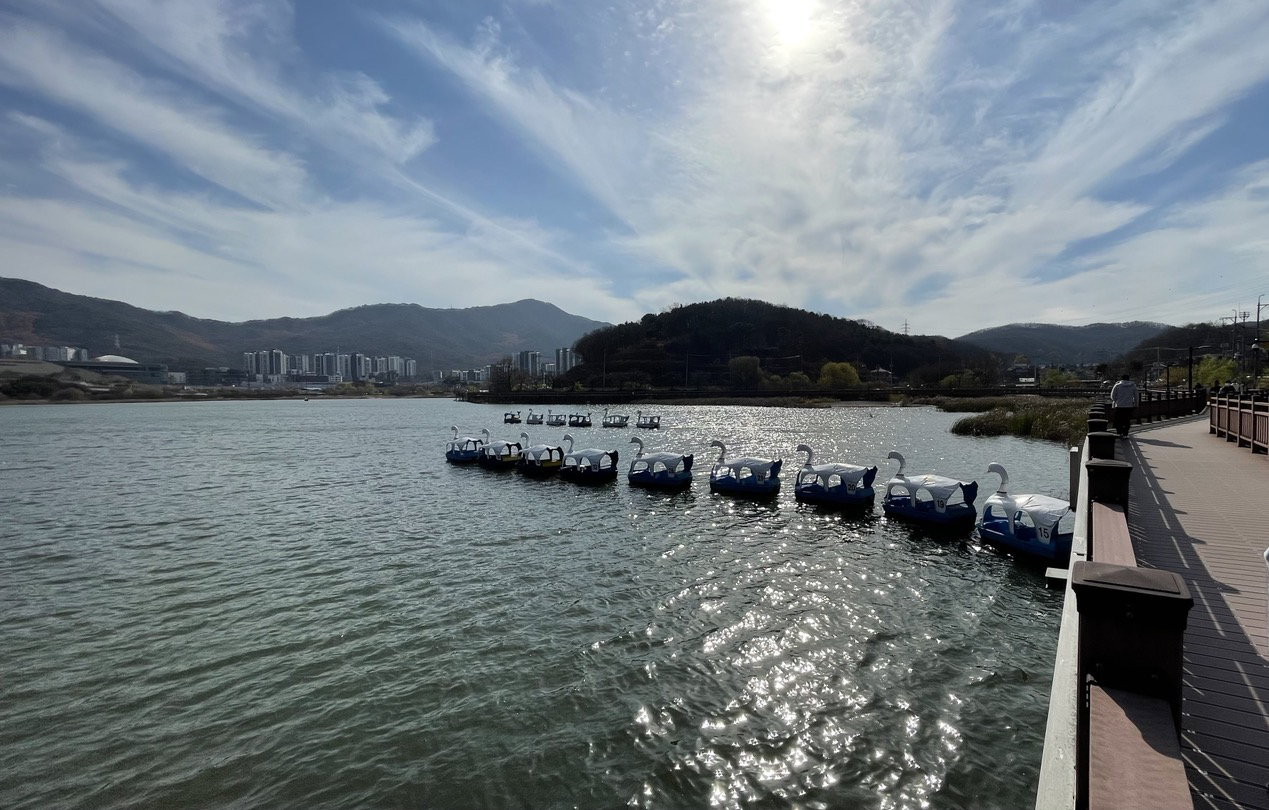 오리배는 백운호수 내에 있는 '백운보트장'에서 탈 수 있어요.