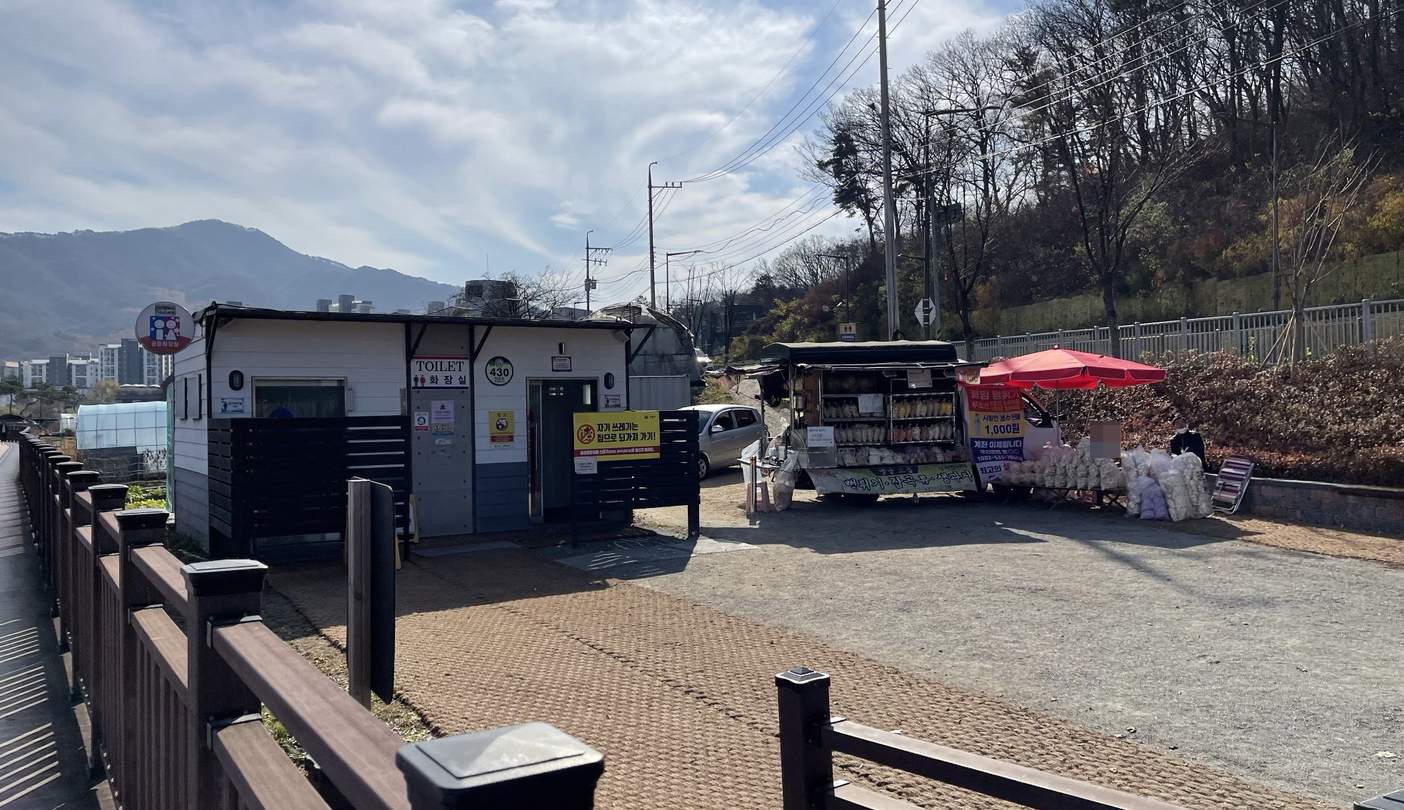 주차장 입구쪽에 화장실이 있습니다.