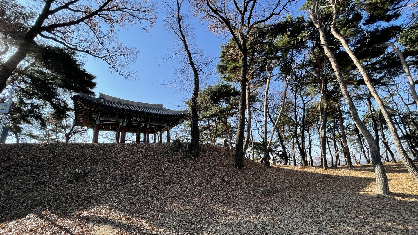 현재 여기에는 정자가 하나 서 있는데, 임진왜란 당시의 건물은 아니고 1957년 복원한 것입니다. 남쪽 현판은 이승만 전 대통령의 친필이라고 하네요.
