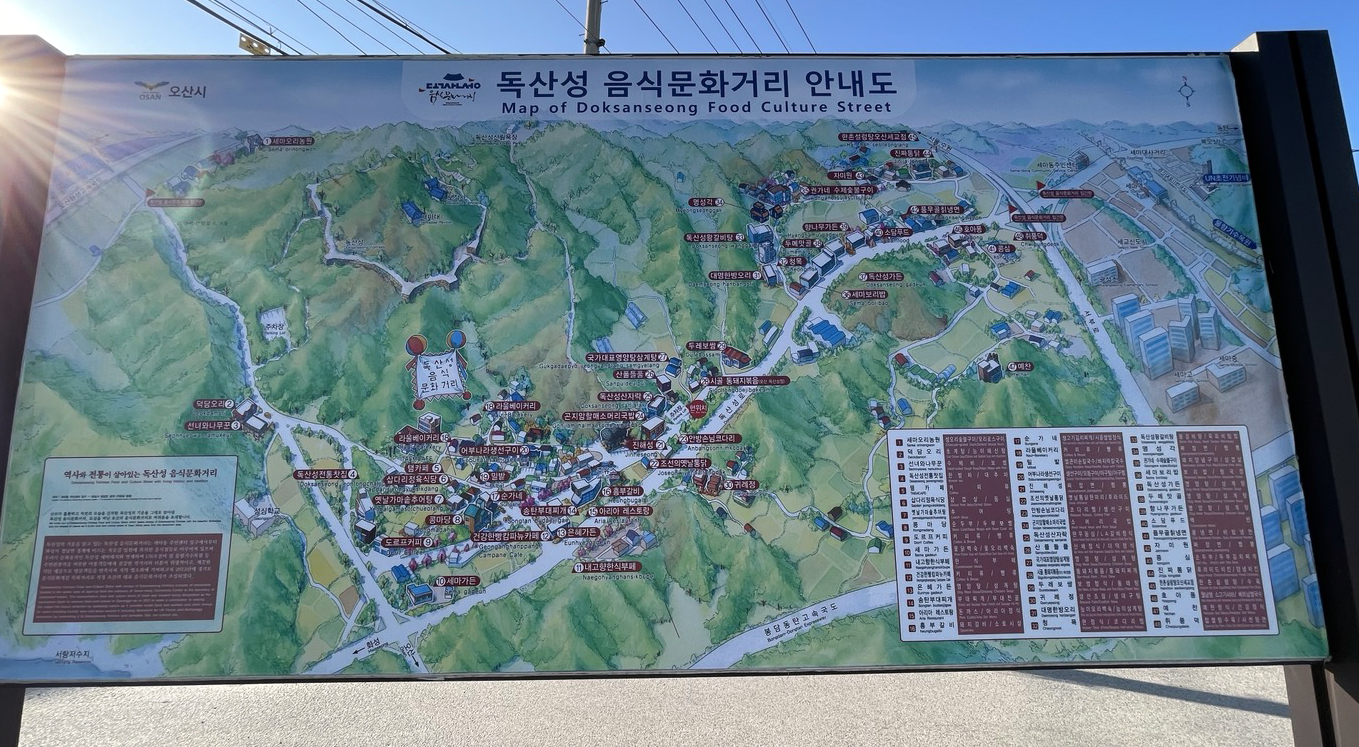 독산성 공용주차장 주변에 '독산성 음식문화거리'가 조성되어 있습니다.