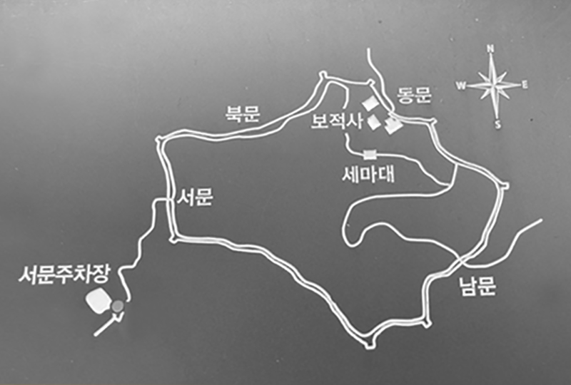 동문에 도착했어요. '세마대'와 '보적사'가 보이네요.