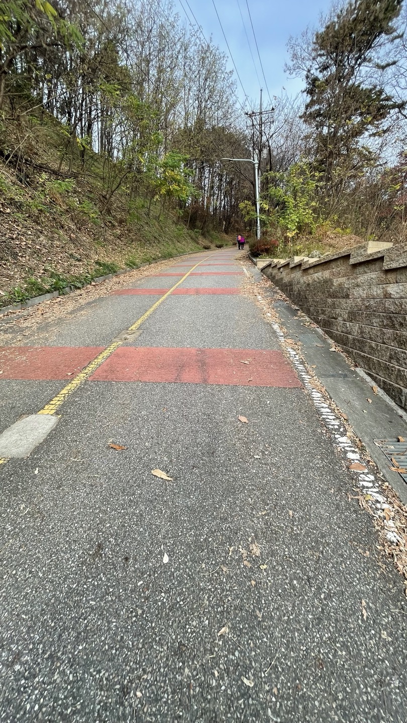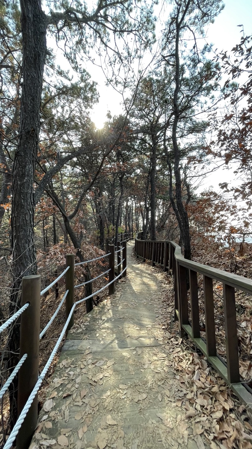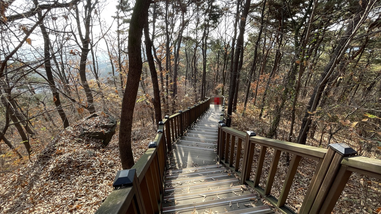 등산로는 전반적으로 난이도가 높지 않아요. 오르락 내리락하면서 조금 숨가쁘게 산책하는 정도에요.