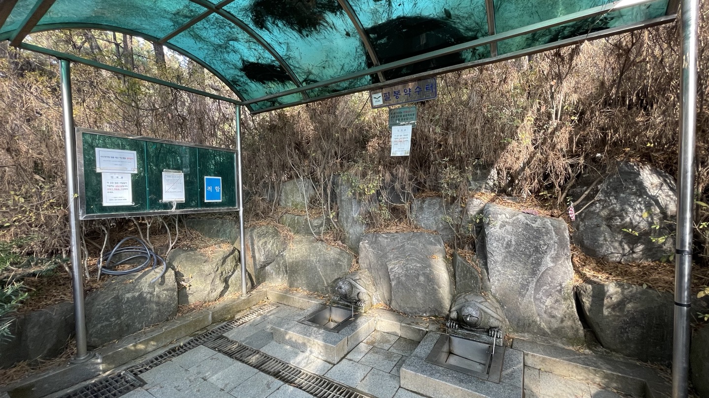 등산로 초입에 보았던 '은계약수터', 산행 중에 이정표에서 보았던 '박동약수터', 그리고 여기 '필봉약수터'까지 3개나 있어요~