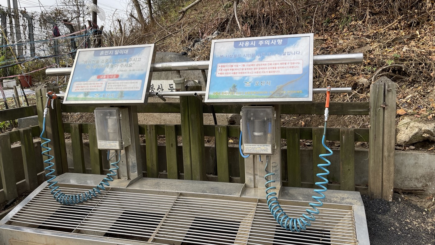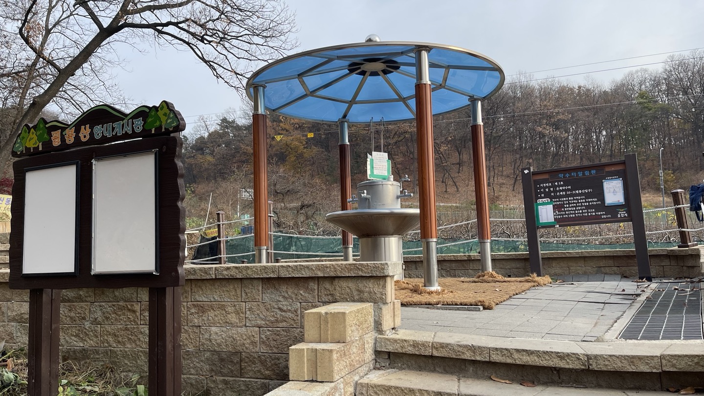 거북이 조형물 옆에 있는 레버를 당기면 약수물이 나옵니다. 콸콸 잘도 나오네요 ㅎㅎ
