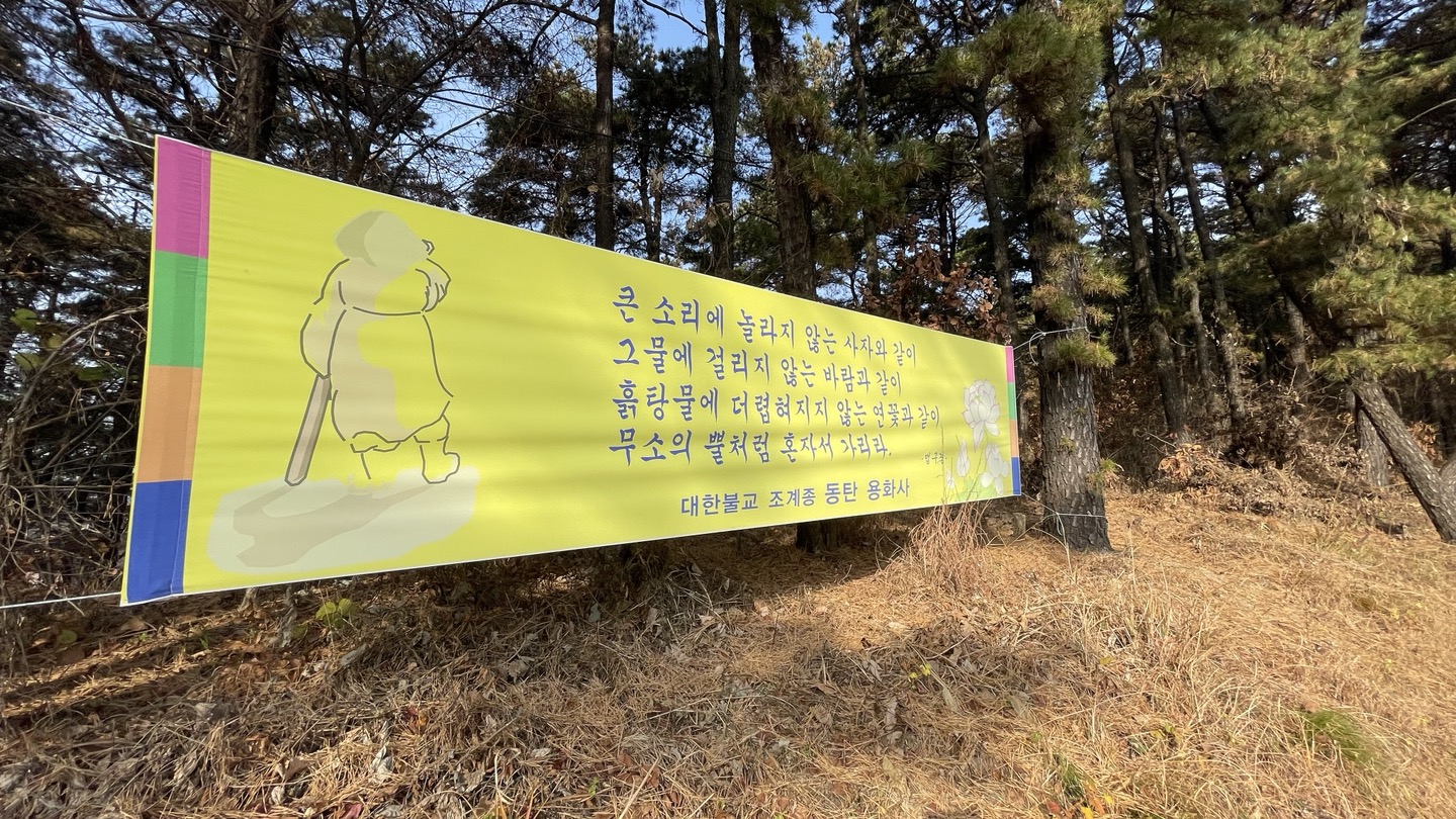 '무소의 뿔처럼 혼자서 가리라' 익숙한 법구경 한구절이 적힌 현수막이 걸려있네요^^