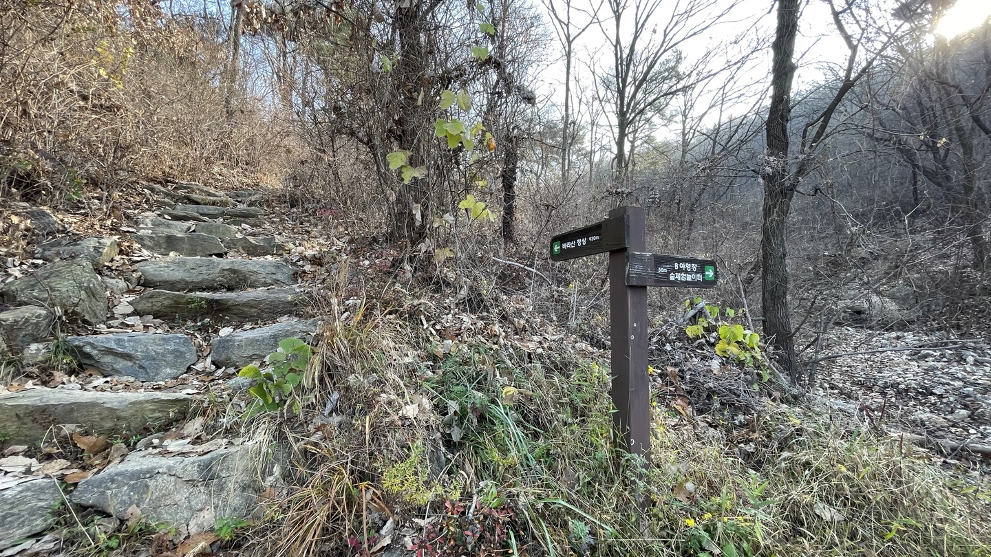 이 지점이 '의왕대간'의 중간정도 되는 지점으로, 오른쪽으로 가면 바라산 ·백운산 방향이고 왼쪽으로 가면 청계산 방향입니다.