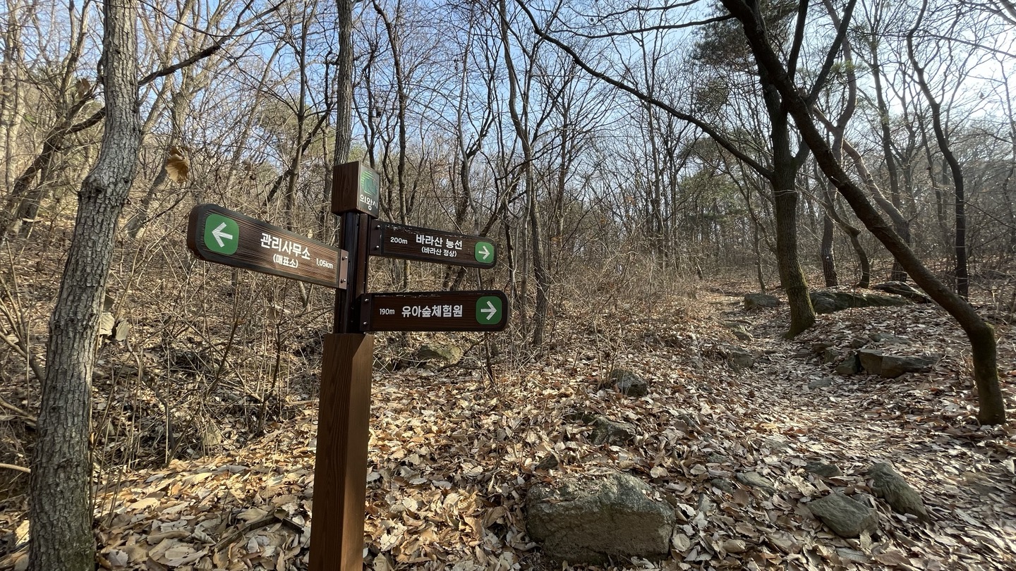 이정표가 곳곳에 보이는데요, '바라산 능선' 방향으로 가면 바라산 정상으로 향합니다.