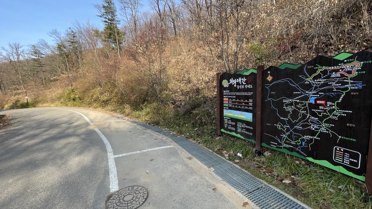 주차를 하고 내리막길로 20~30m쯤 내려오면 의왕대간 등산로 안내도가 보입니다. 그 옆으로 바로 등산로가 시작되고요.