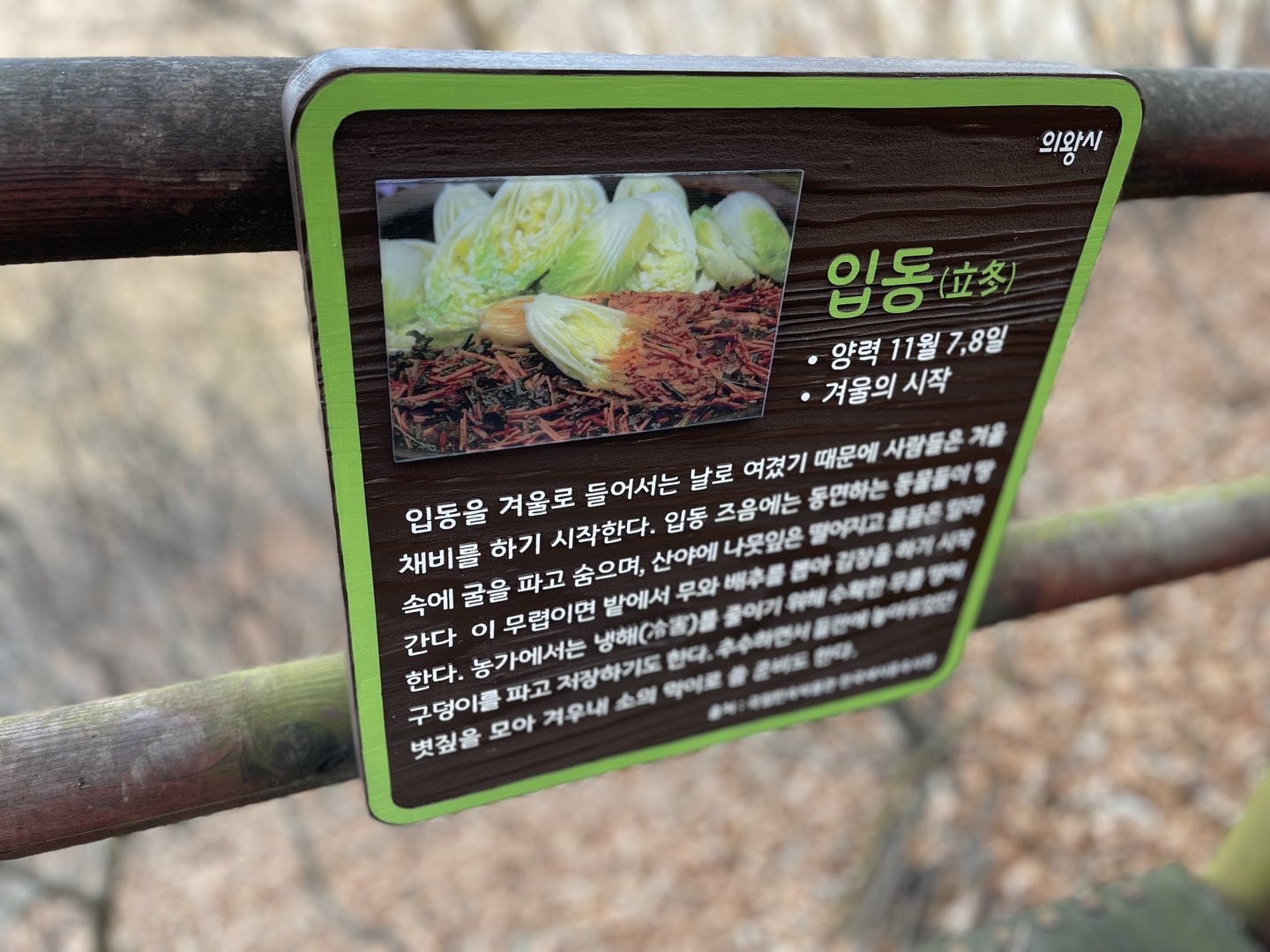 계단 좌우측에는 24절기의 의미와 상세내용을 적은 나무 현판이 걸려있습니다.