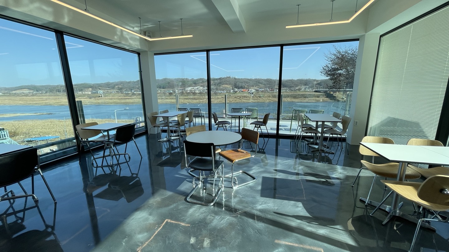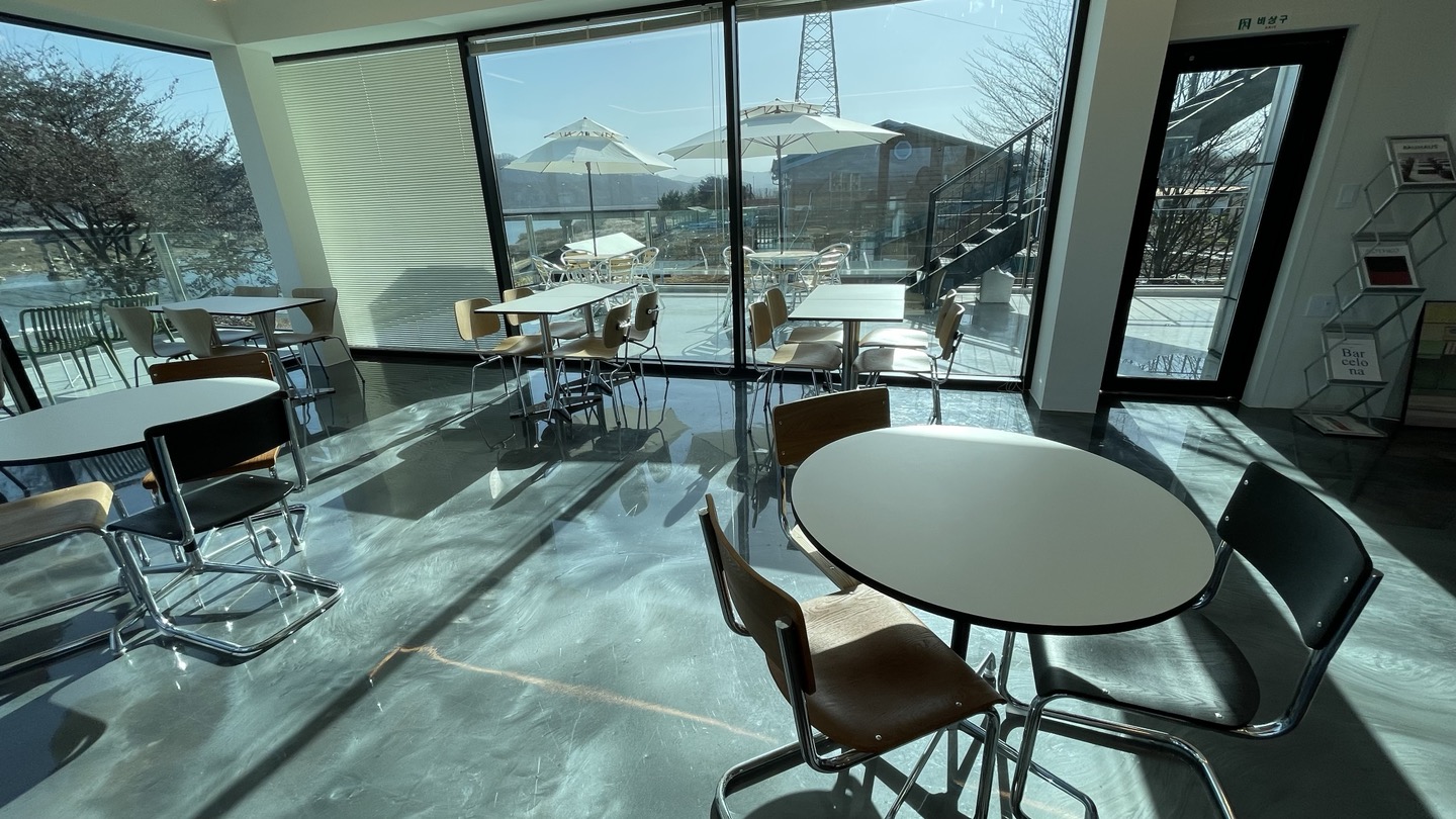 카페 3면이 모두 통창으로 되어있어서 어느 곳에 앉더라도 바깥 풍경을 볼 수 있습니다.