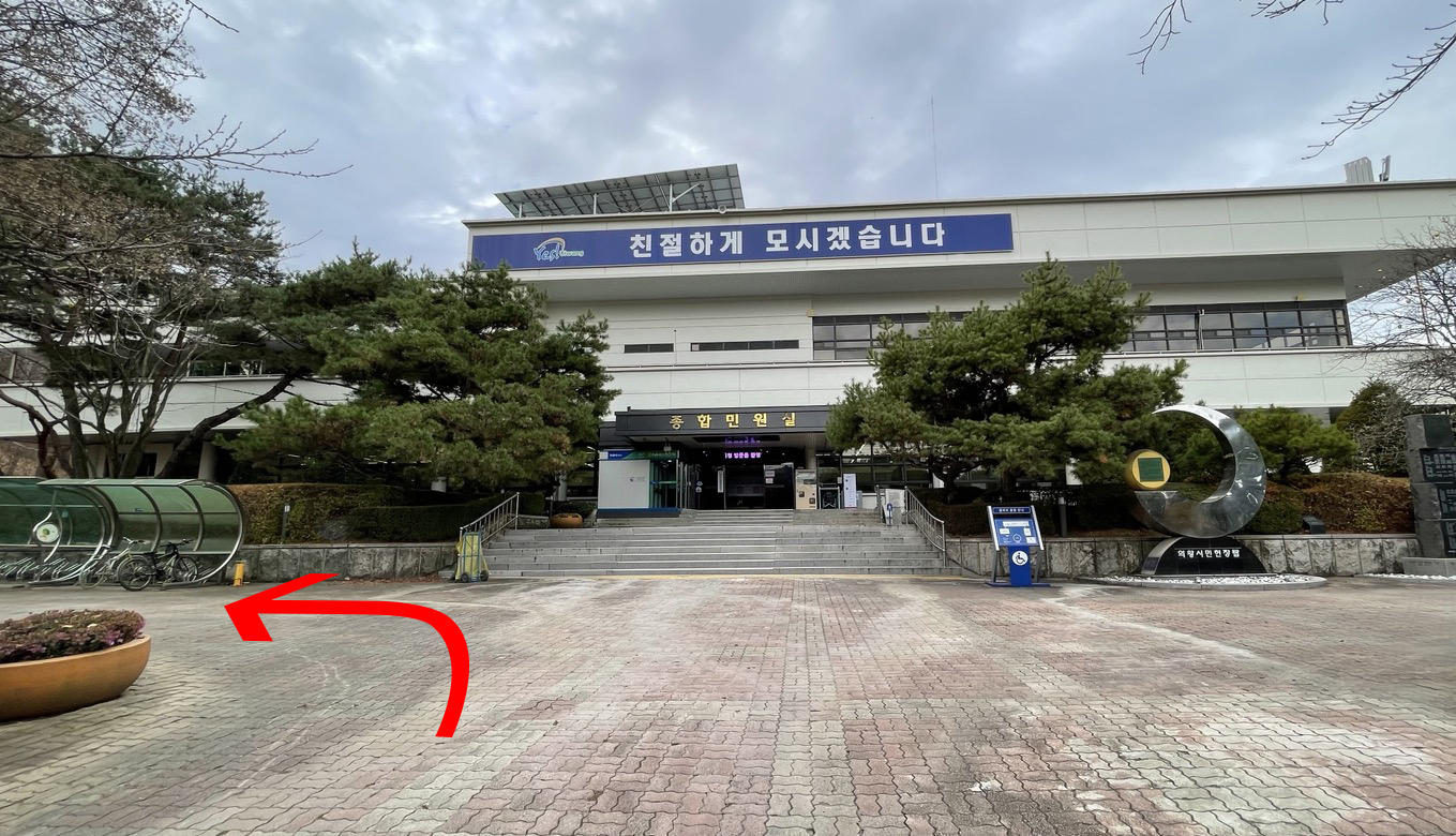 종합민원실 앞에서 자전거 거치대가 있는 쪽으로 들어갑니다.