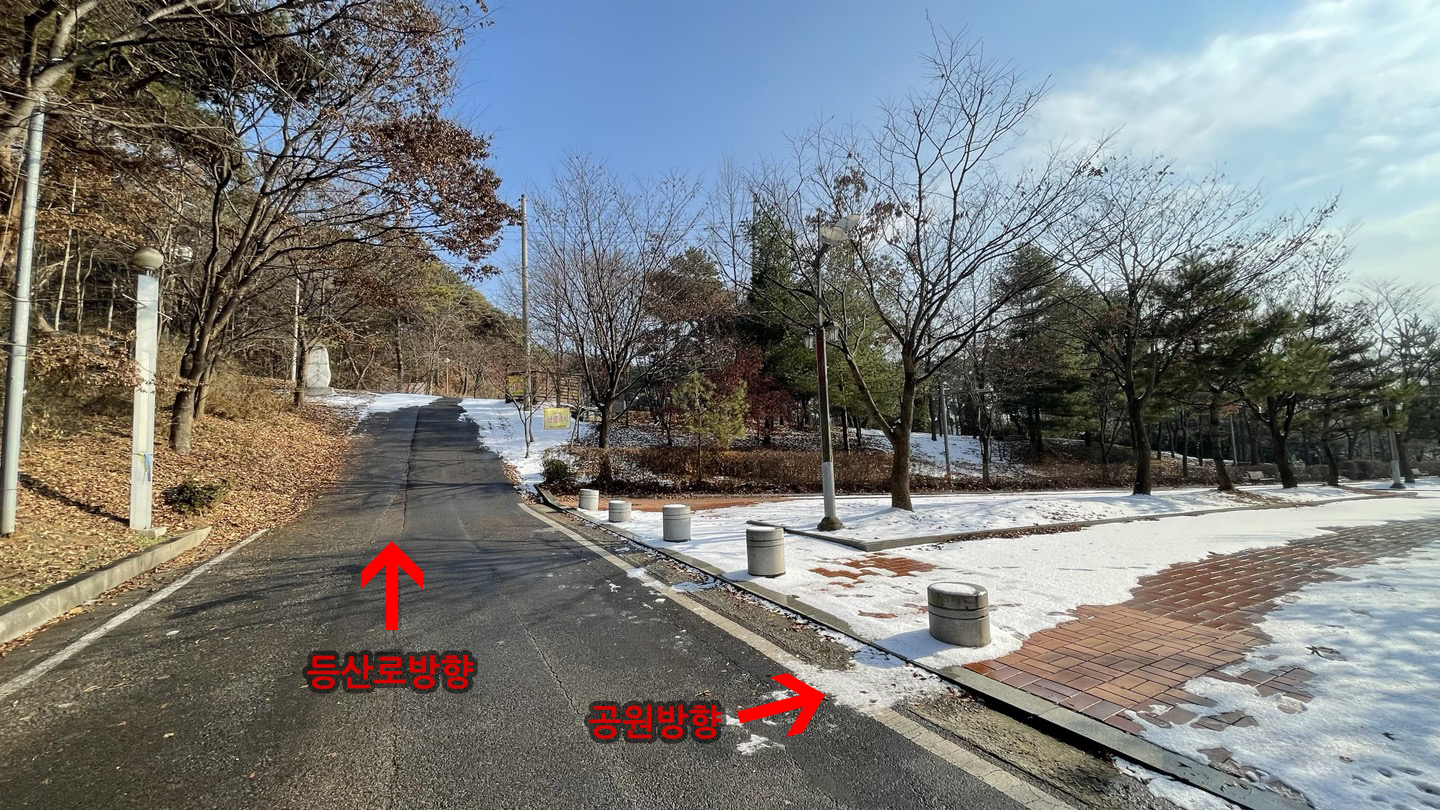 주차를 하고 길을 따라 직진하면 등산로입구로 향합니다. 중간에 근린공원 방향으로 가는 길이 있고요.