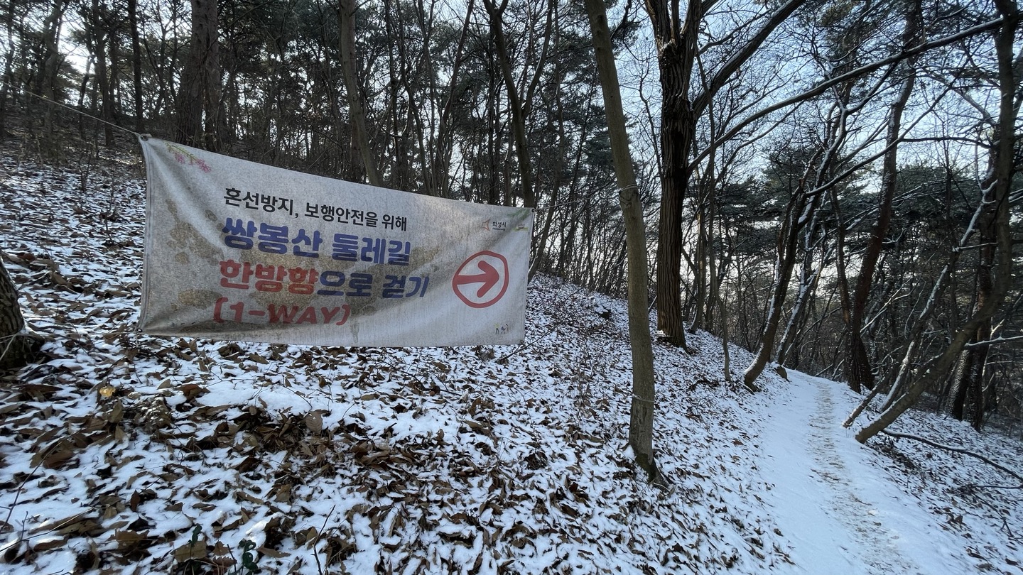 쌍봉산 둘레길을 산책할 때는, 혼선방지와 보행안전을 위해 '한방향' 걷기를 지켜주세요~ (보행로가 좁아요)