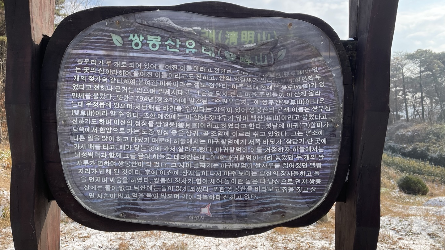쌍봉산의 역사적 의의에 대한 안내판이 있네요.