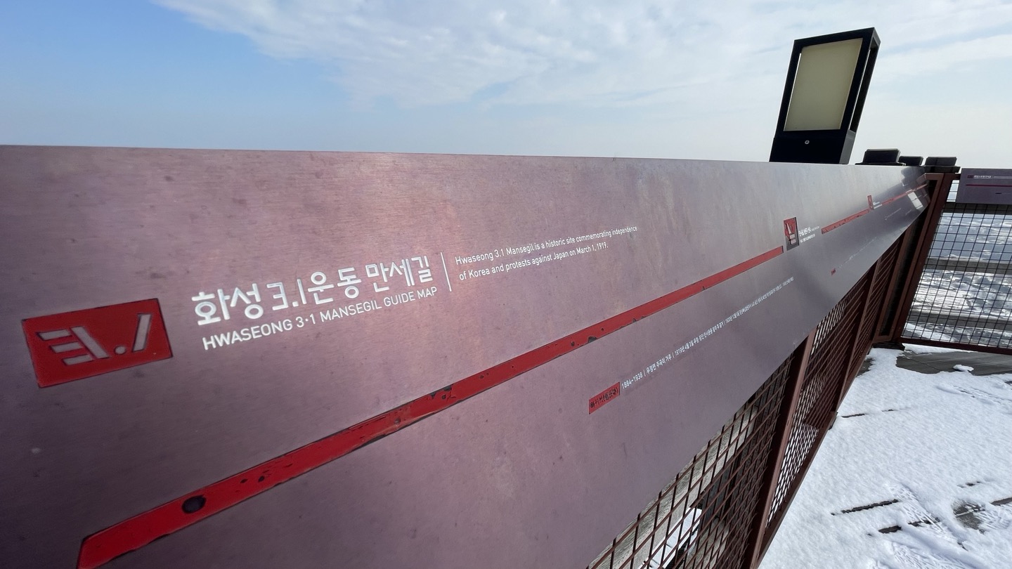 전망대 난간을 따라 '화성 3.1운동 만세길'의 경로가 적혀 있습니다.