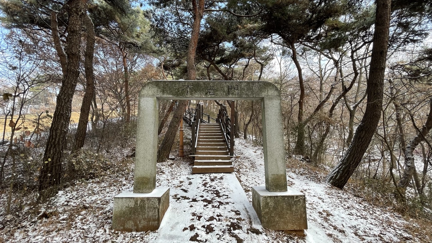 조금 걸어 올라오니 묵직하게 생긴 돌문이 보이네요.