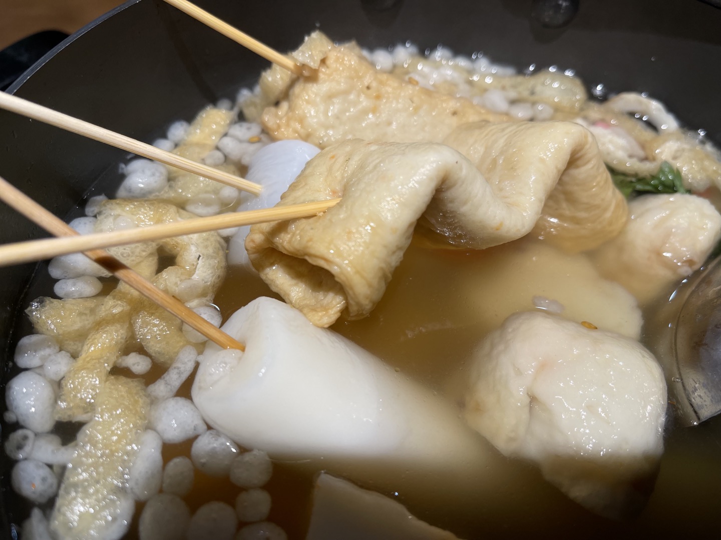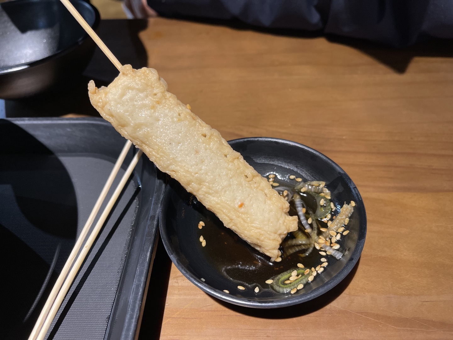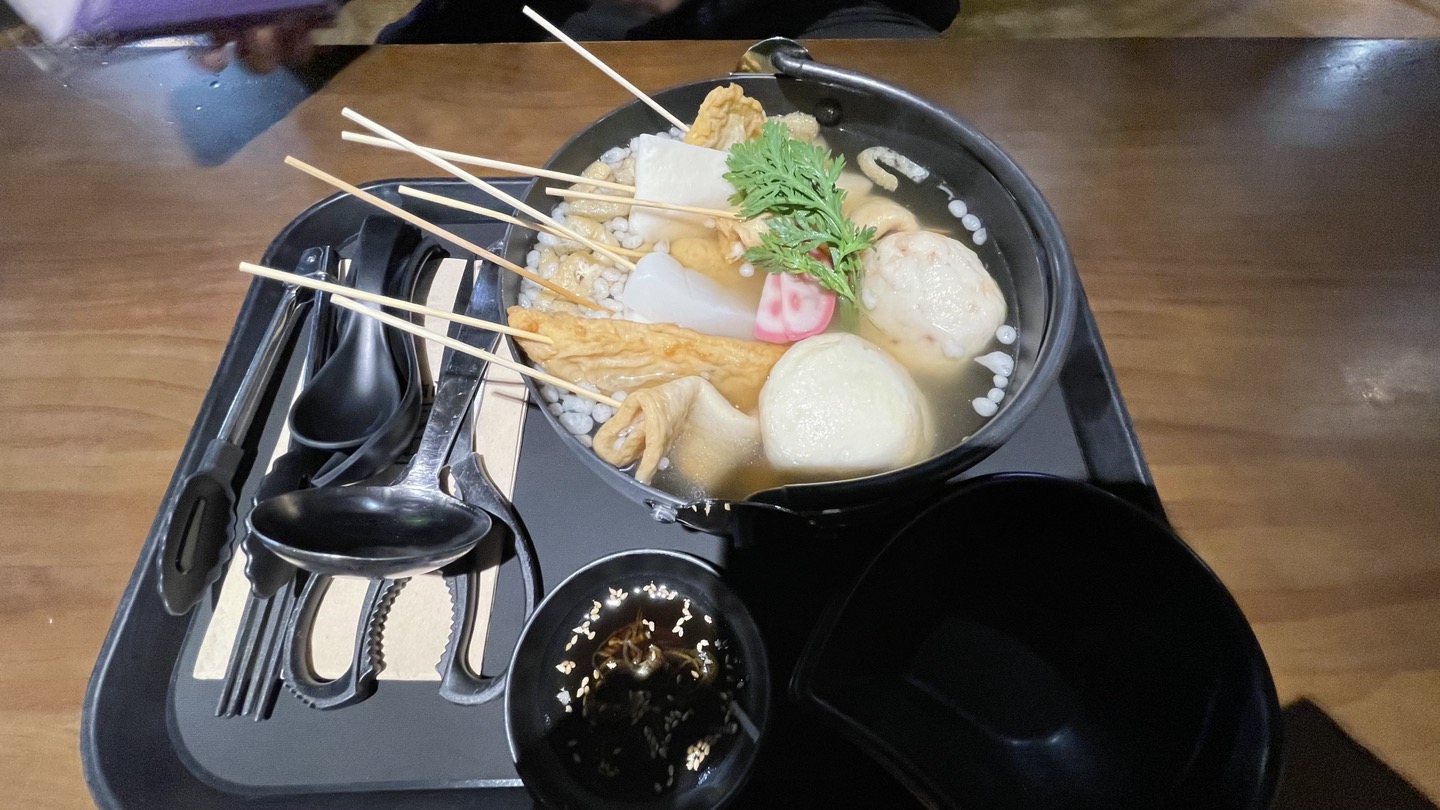 다양한 종류의 어묵꼬치가 10개 정도 나오는 메뉴로, 딱 보기에는 양이 많지 않아 보였는데 2명이 먹기에 부족하지 않은 양이었어요.