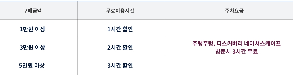 주차비는 구매금액 구간별로 과금됩니다. (아래표 참고하세요~)