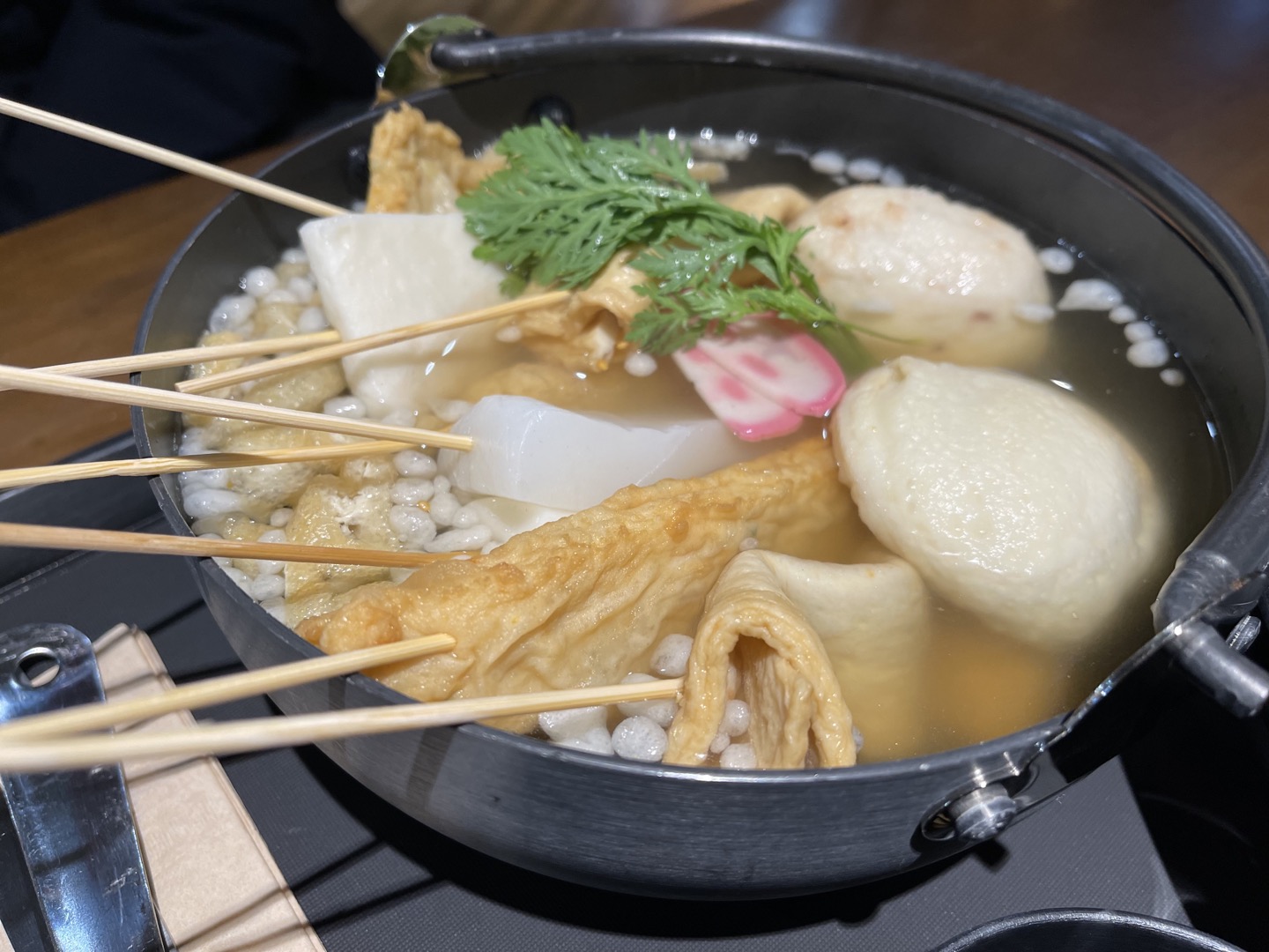 다양한 종류의 어묵꼬치가 10개 정도 나오는 메뉴로, 딱 보기에는 양이 많지 않아 보였는데 2명이 먹기에 부족하지 않은 양이었어요.