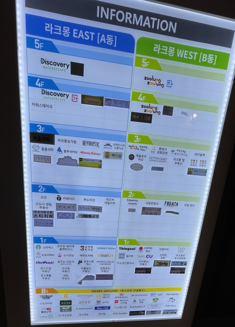 라크몽 오픈한지는 1년 정도 된 것 같고요, 아직은 비어있는 상가들이 꽤 보였습니다. 1,2층 둘러보니 부동산들만 많이 입점해 있더라고요. ^^;