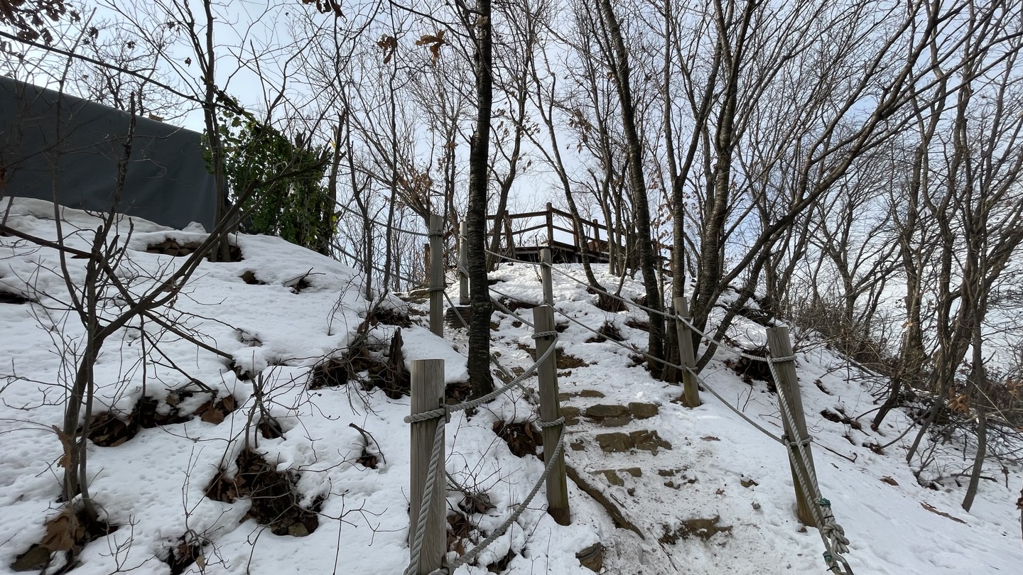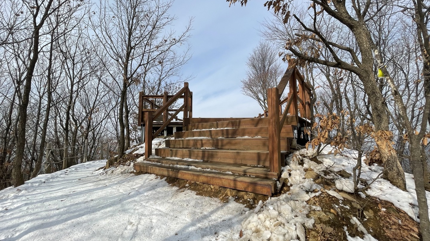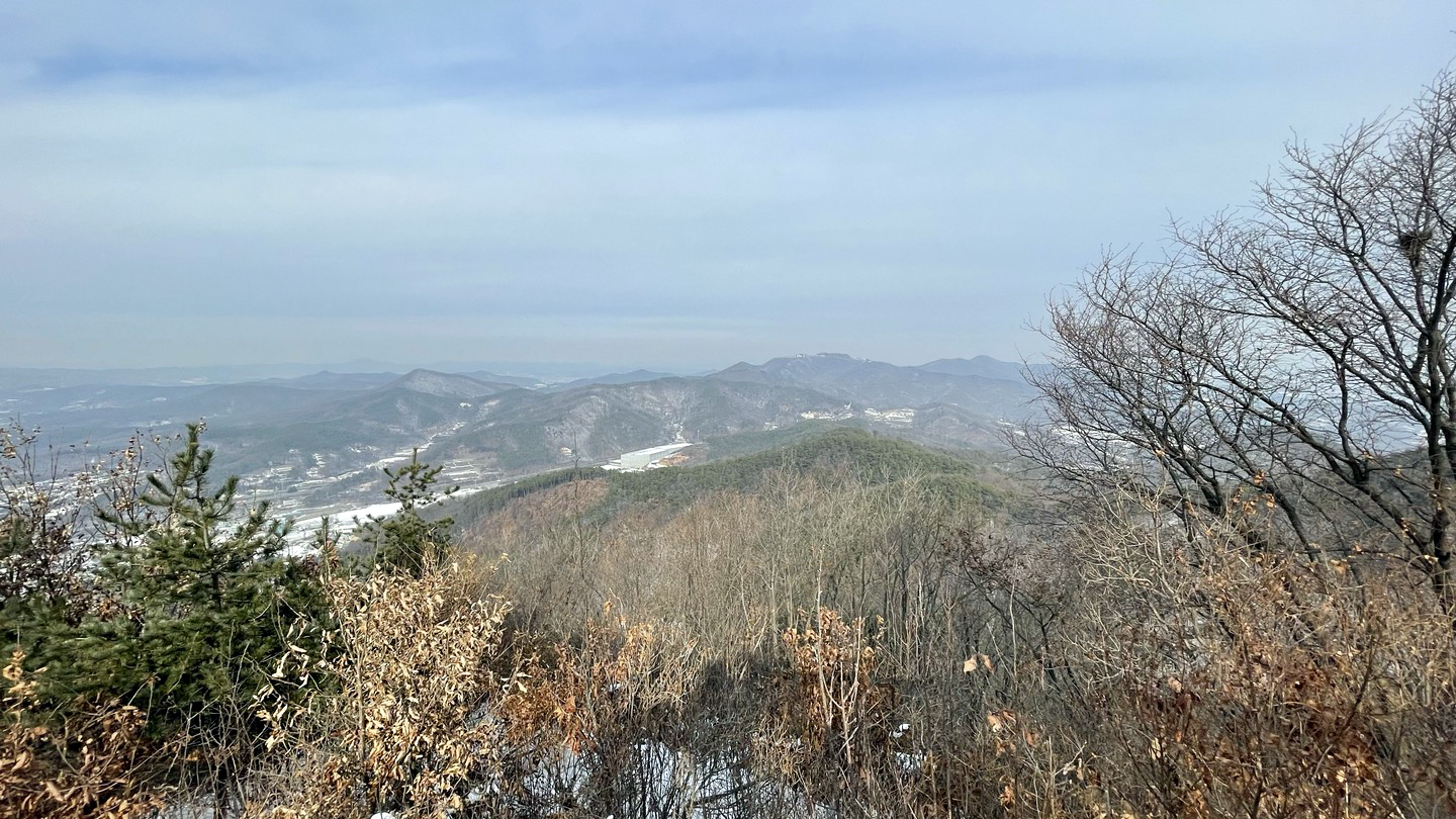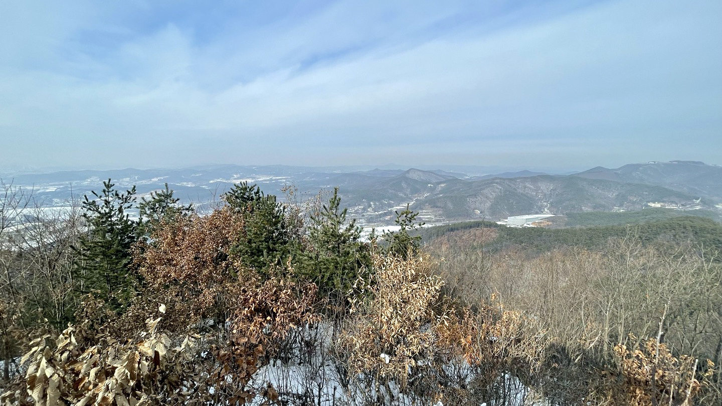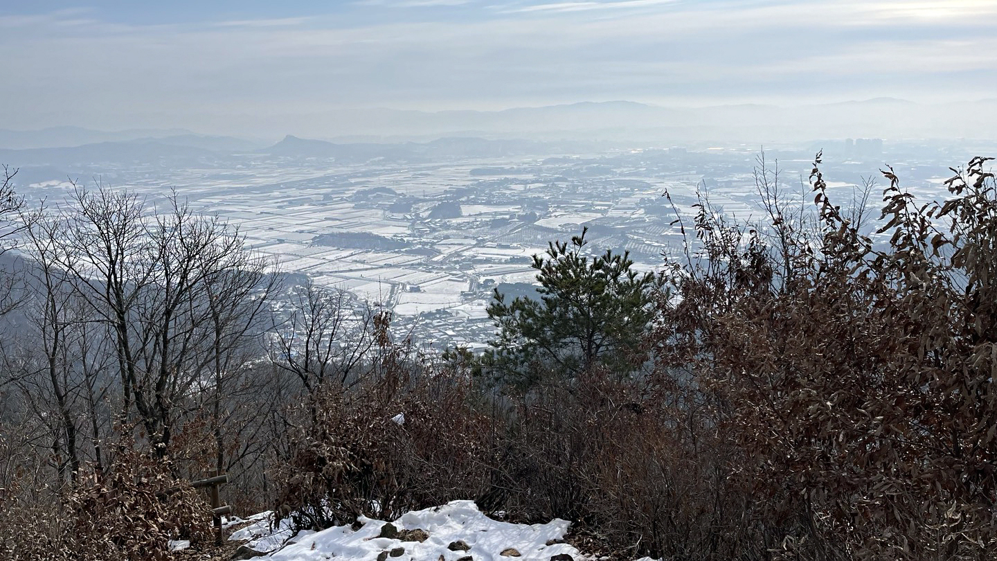 와우~!! 생각지도 않게 멋진 풍경이 똭! 산 아래로 하얗게 눈 덮인 마을이 가득 펼쳐져 있었습니다. (고성산 정상보다 여기 전망이 더 좋았어요~)