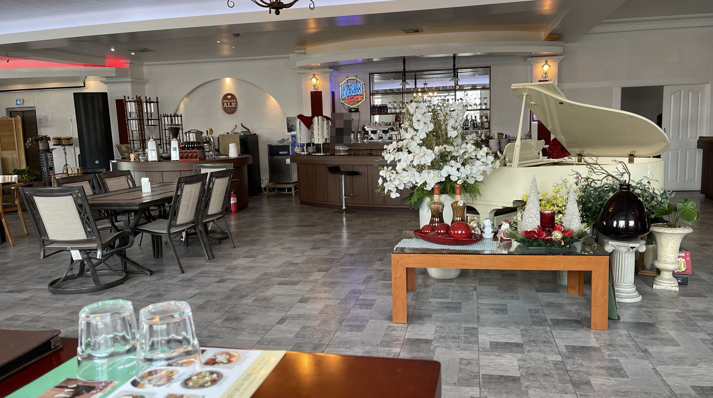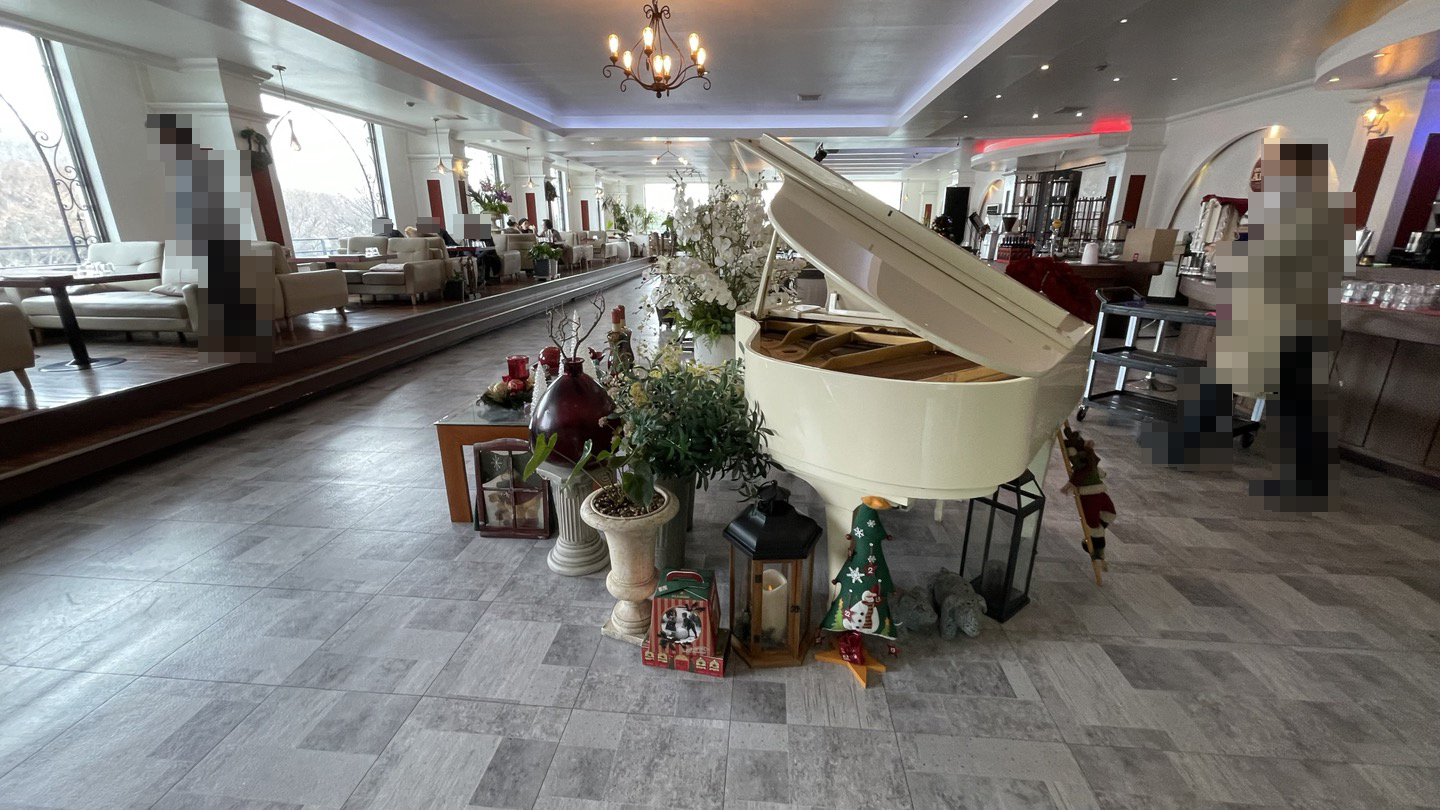산타나 레스토랑 내부 모습입니다. 들어서자마자 흰색 그랜드 피아노 한대가 눈길을 잡네요.