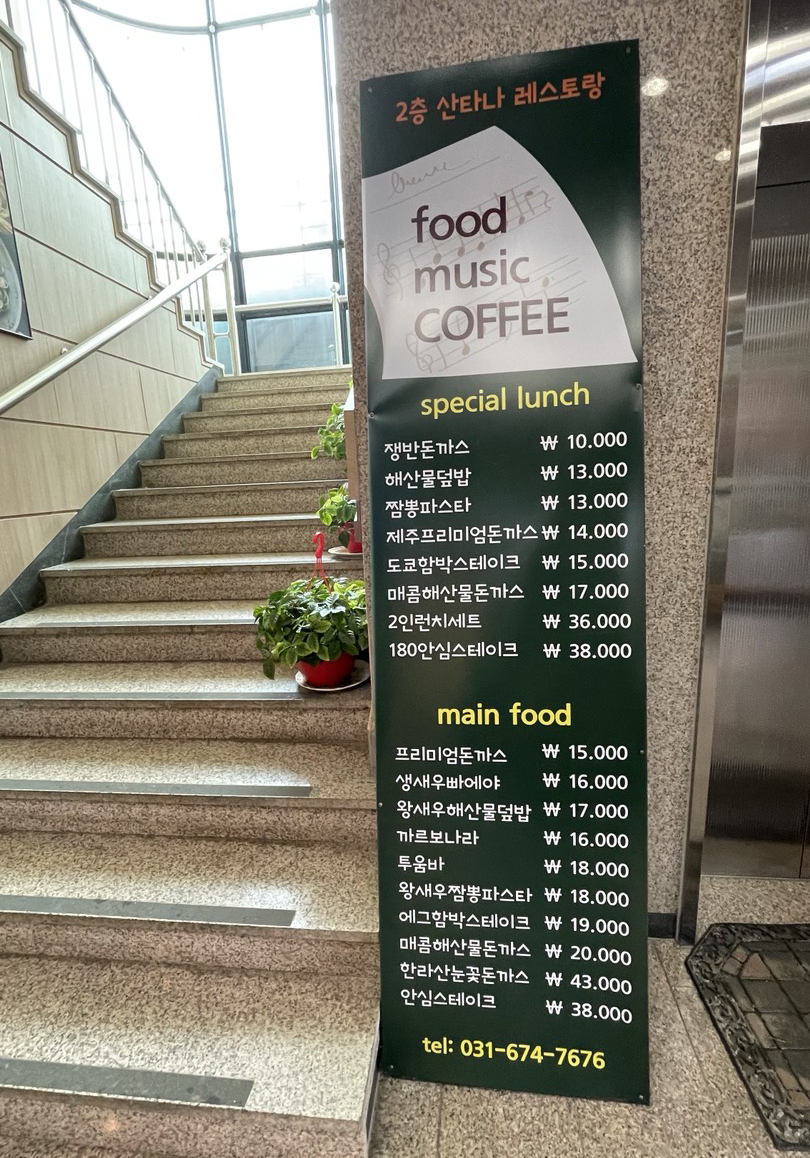 이렇게 고성산 산행을 마치고 점심을 먹으러 창진산장휴게소 안에 있는 '산타나 레스토랑'에 갔습니다.
