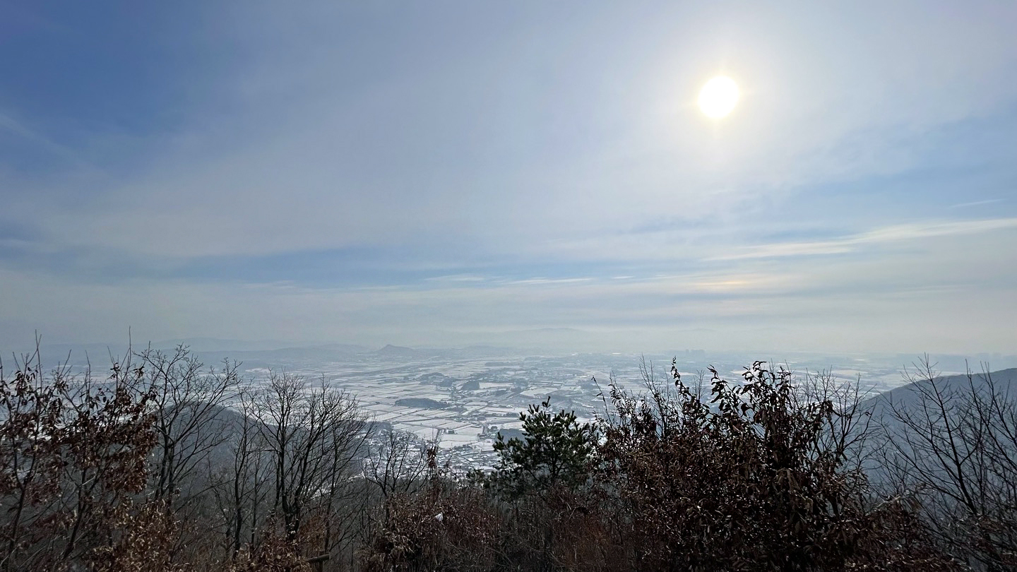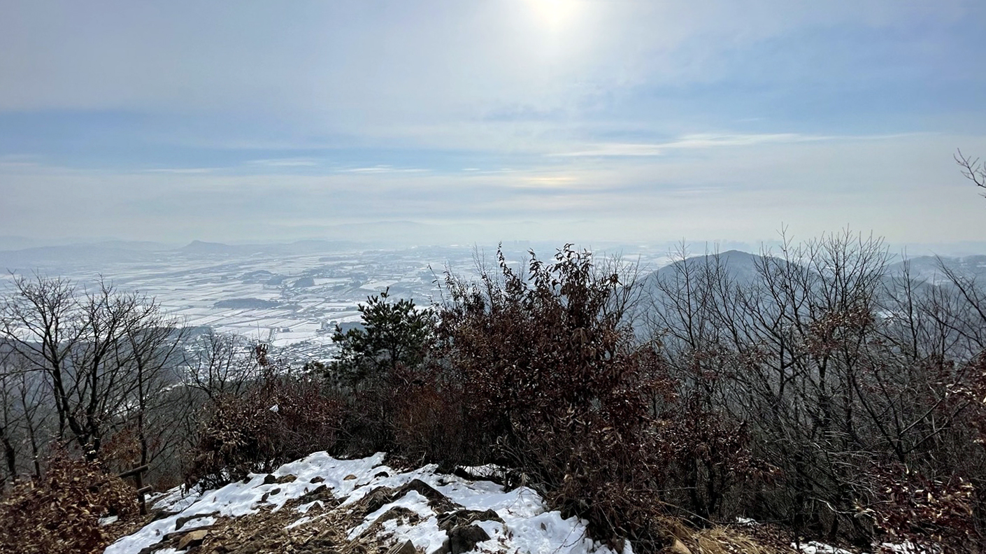와우~!! 생각지도 않게 멋진 풍경이 똭! 산 아래로 하얗게 눈 덮인 마을이 가득 펼쳐져 있었습니다. (고성산 정상보다 여기 전망이 더 좋았어요~)