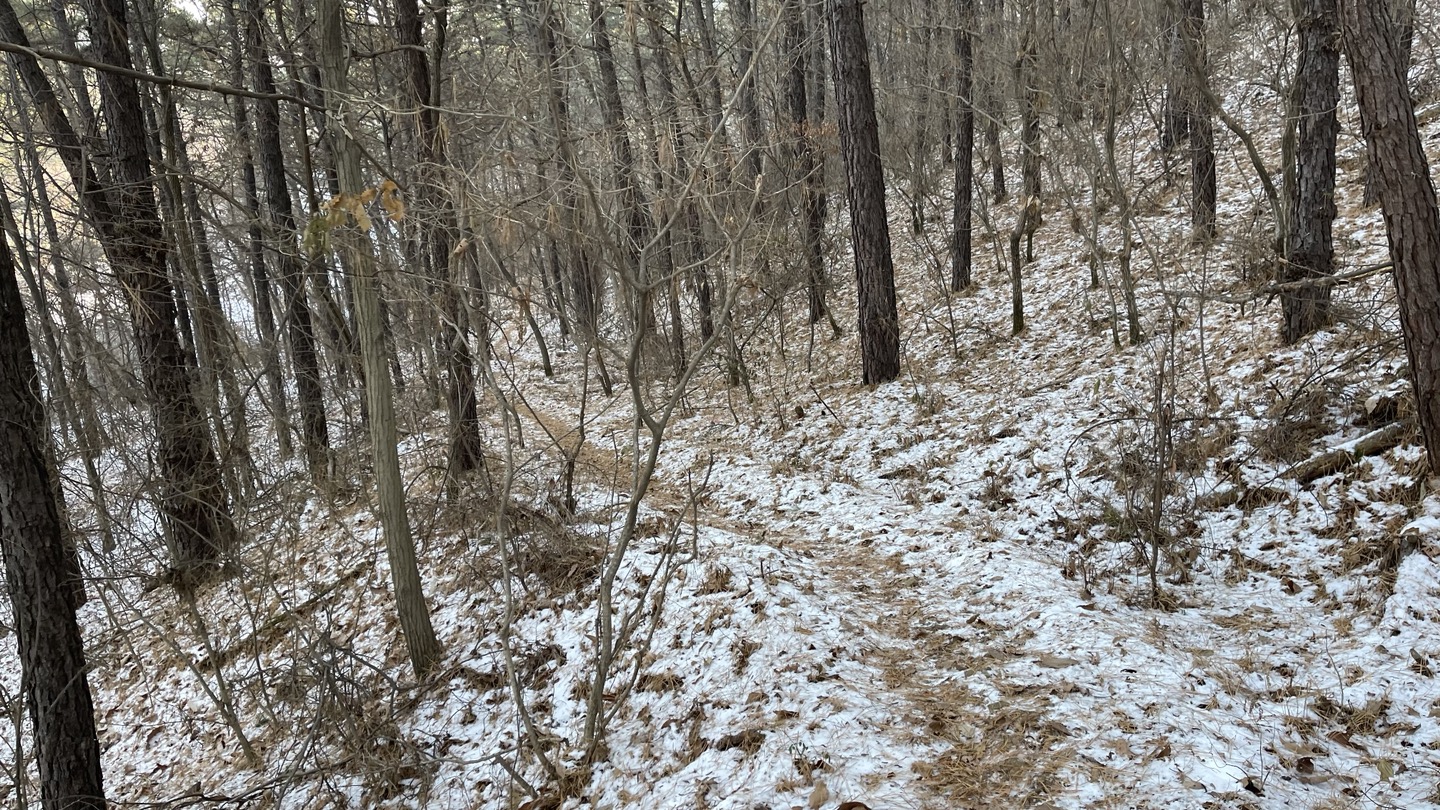 마등산 등산로는 생각했던 것보다 눈이 많이 녹아 있었습니다. 햇볕이 잘 들어서 그런가봐요. (그래서 묘지도 많았나??)