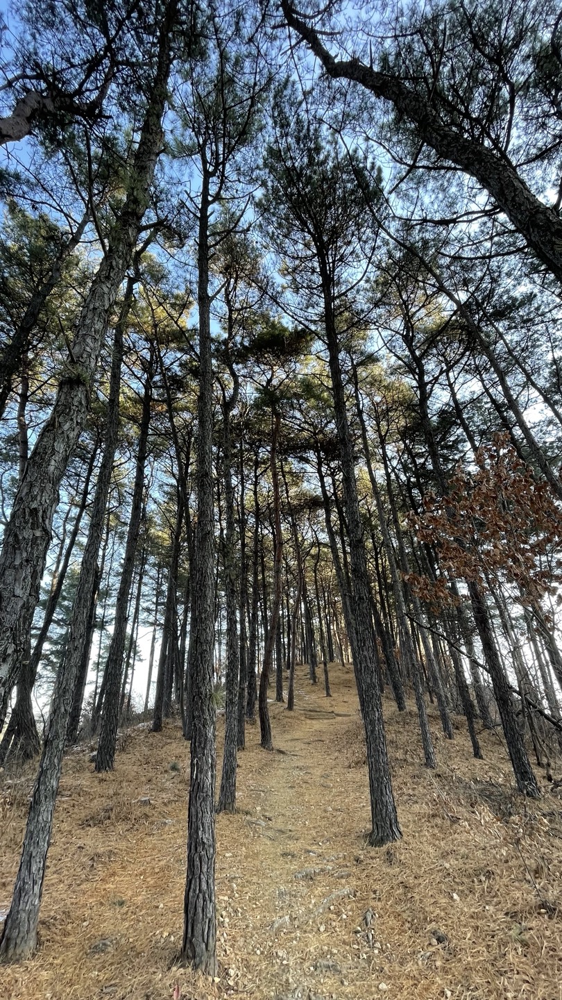 소나무숲과 등산로가 자연스레 어우러져 있어 참 이쁘다는 생각이 들었습니다.