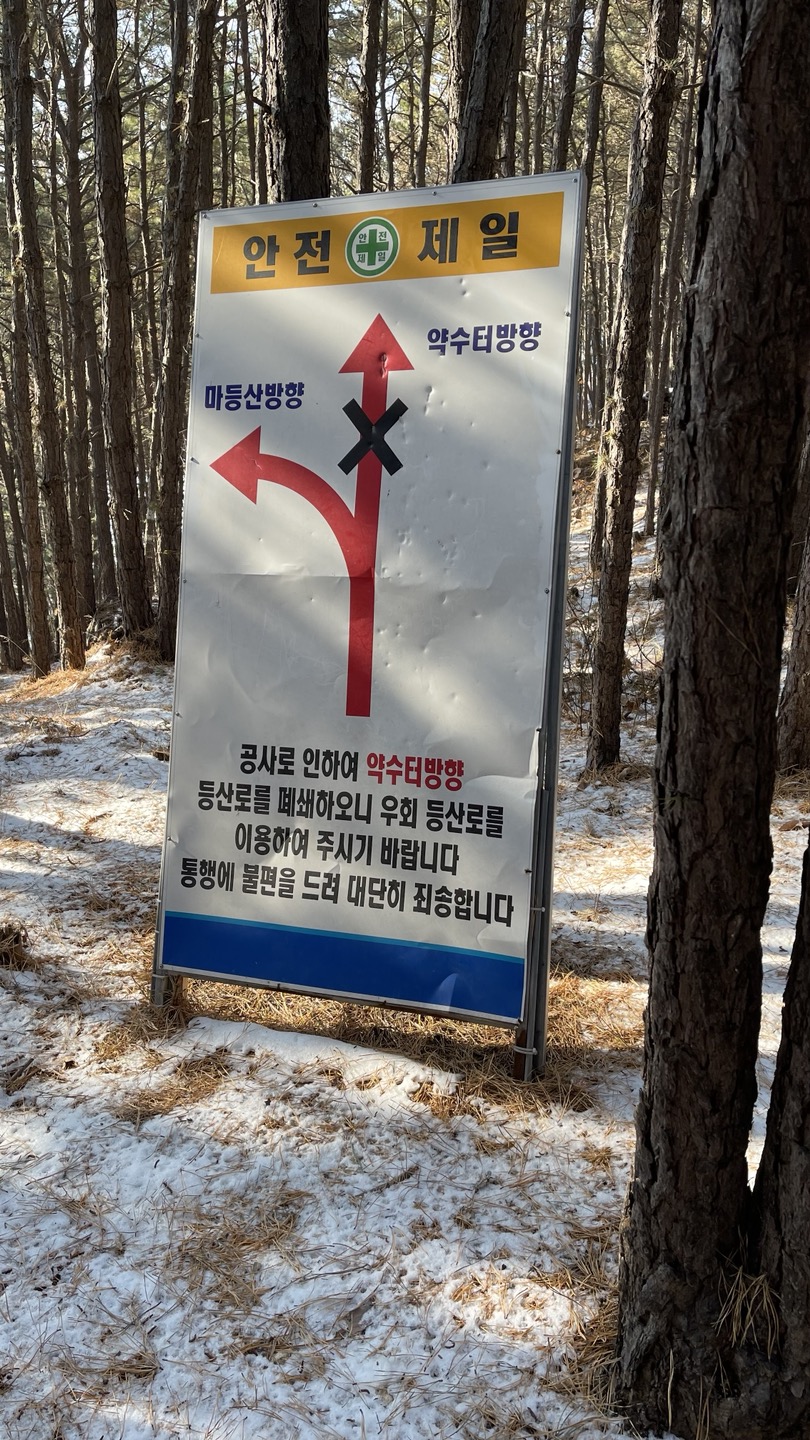 약수터방향 등산로가 폐쇄되었으니 우회 등산로를 이용하라는 안내문이네요.