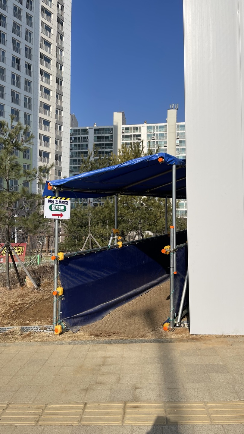 아파트 공사로 인해 따로 마련된 원당초등학교 통학로를 통해 등산로까지 이동했습니다.