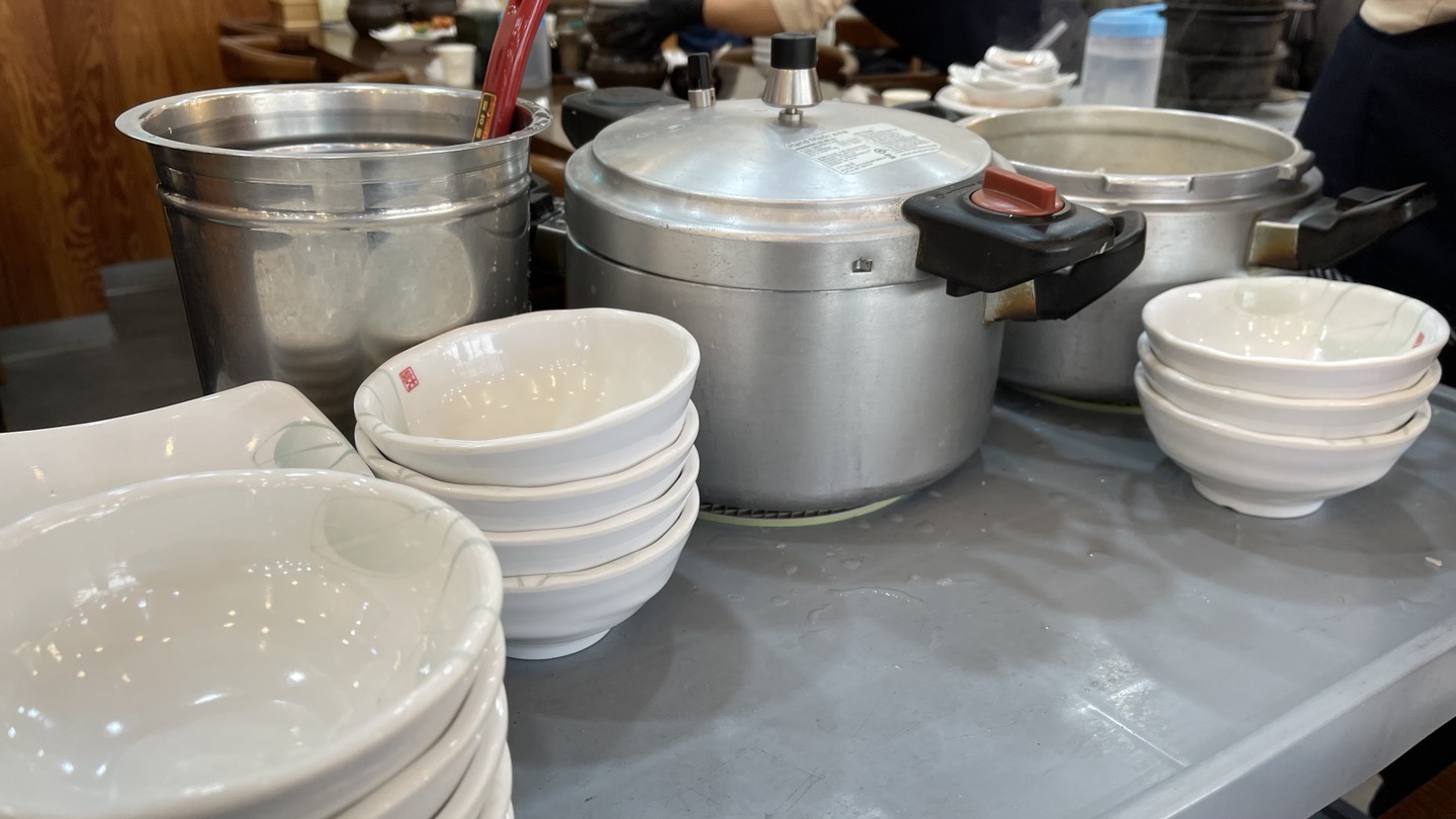 공기밥은 압력밥솥과 그릇을 웨건에 실고 다니시면서 한 그릇씩 퍼 주세요.^^