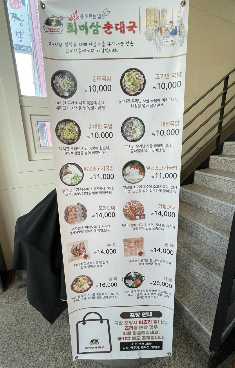 최미삼 순대국 메뉴에요. 대기번호가 불리길 기다리면서 뭐 먹을까 심사숙고 ㅎ