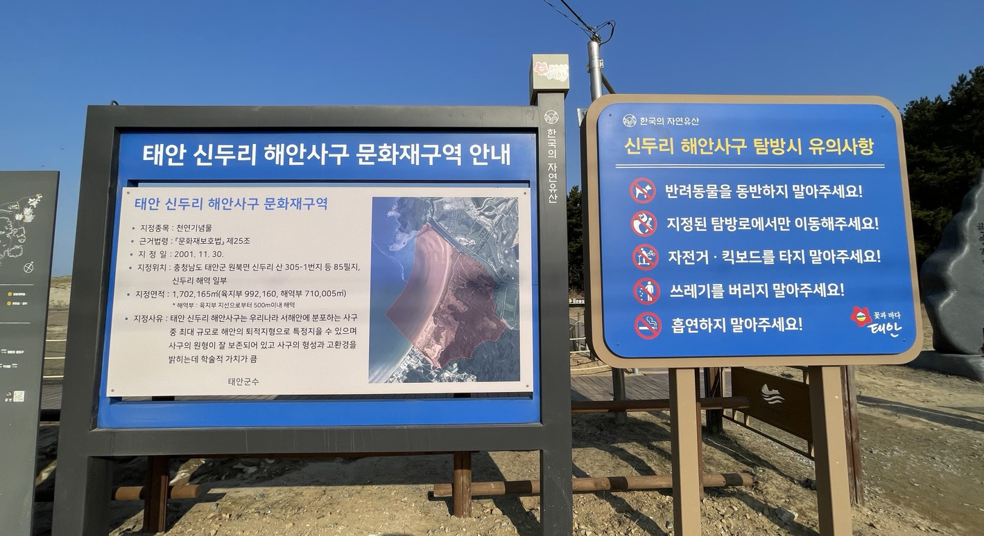 이런 가치를 인정받아 2001년 '태안 신두리 해안사구'라는 명칭으로 천연기념물 제431호로 지정되었습니다.