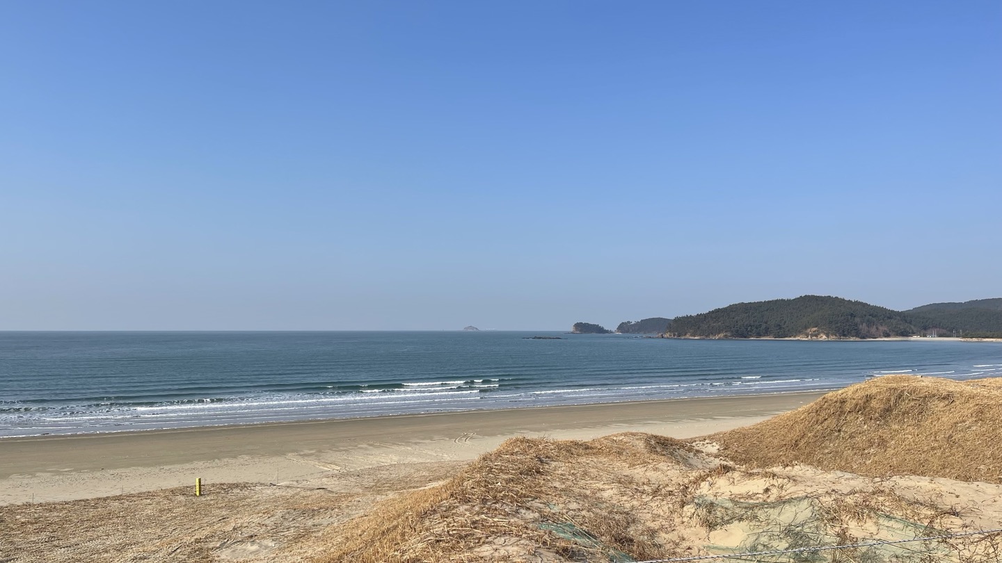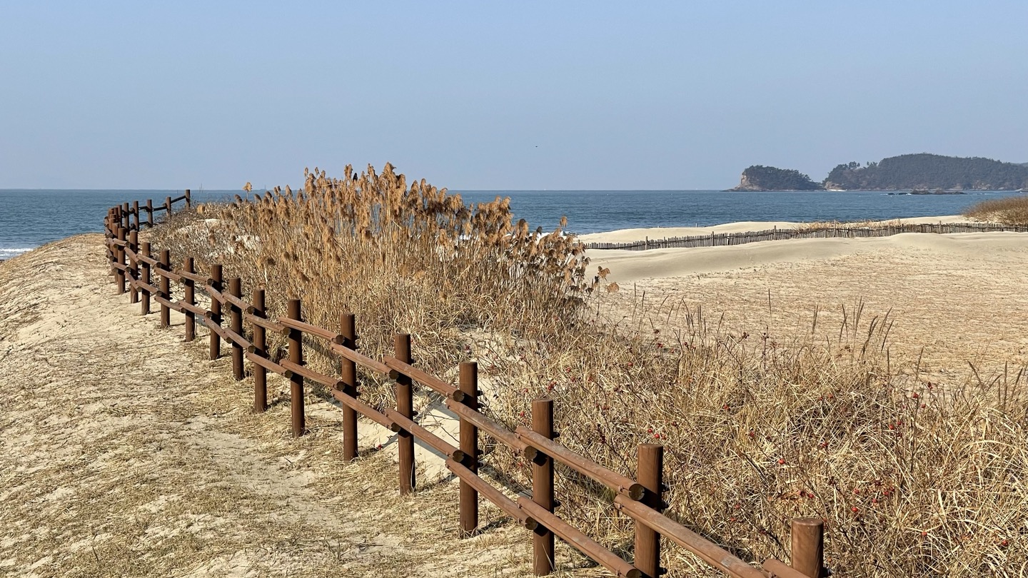 옆에 펼쳐진 바다와 해변가, 해안사구가 어우려져 평화로운 분위기를 만들어 냅니다.