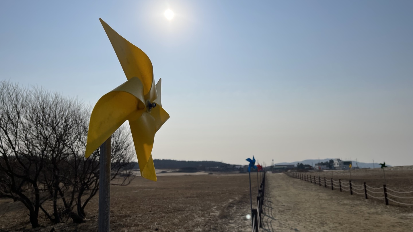 출발할 때 보았던 바람개비 길을 걸어나오며 신두리 해안사구 탐방을 마무리 했습니다.