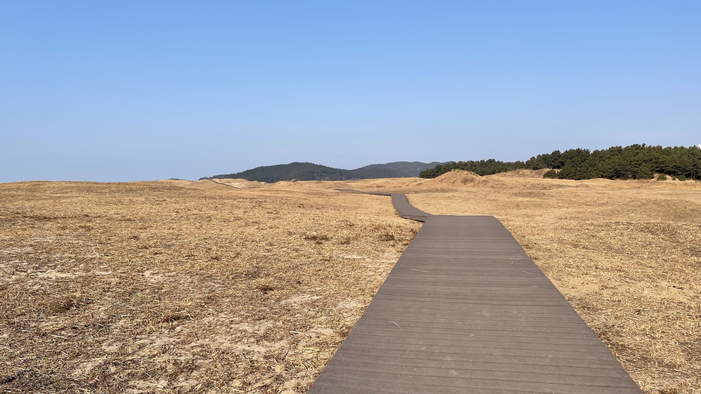 모래언덕을 지나 데크길을 따라 계속 걸어갑니다.