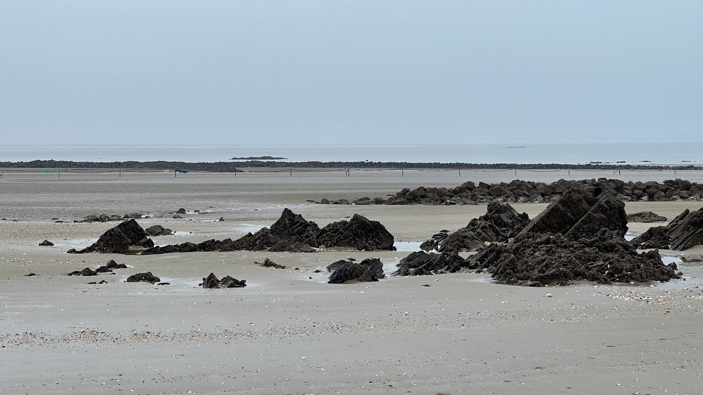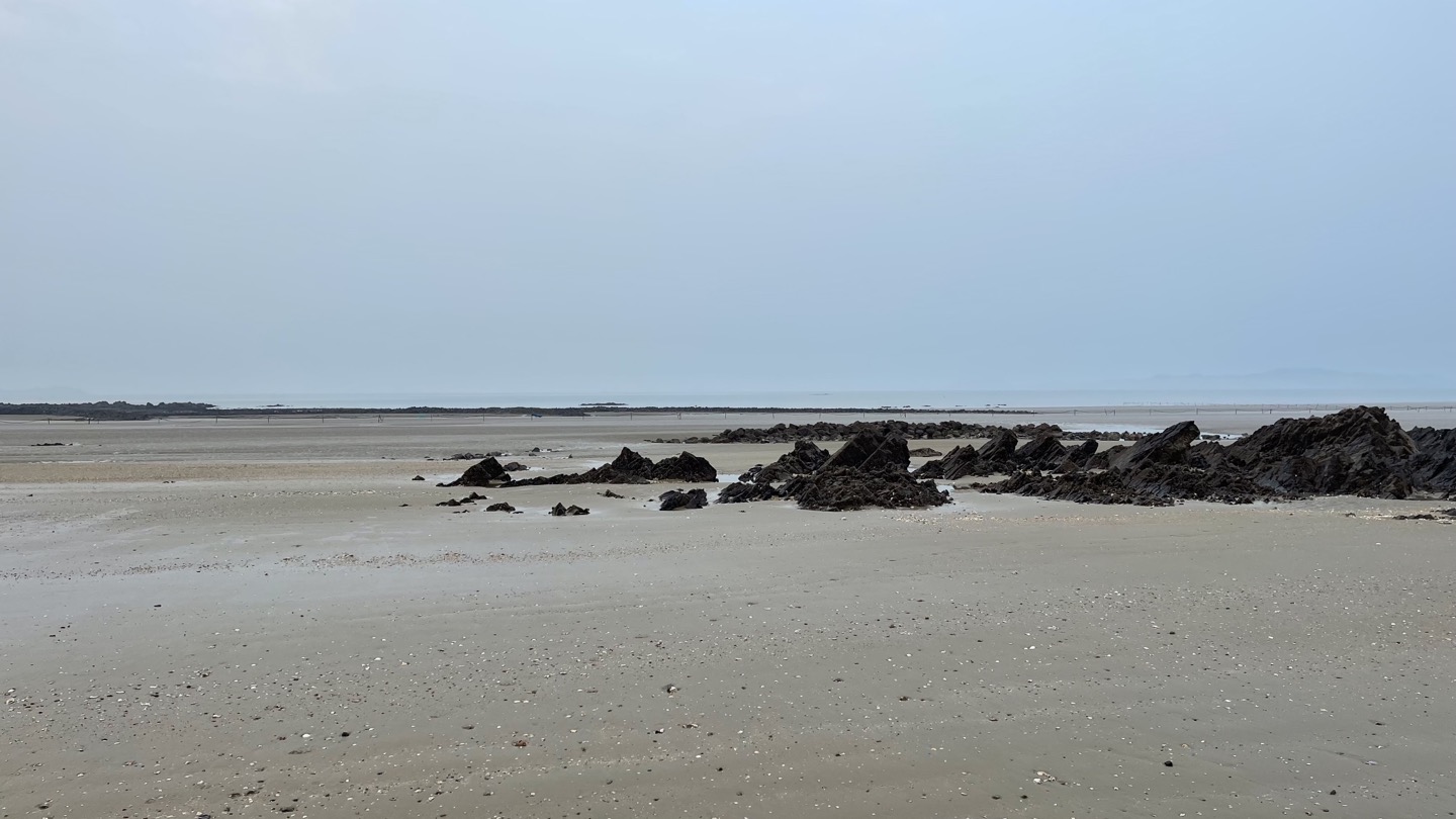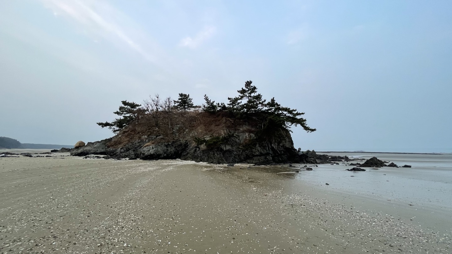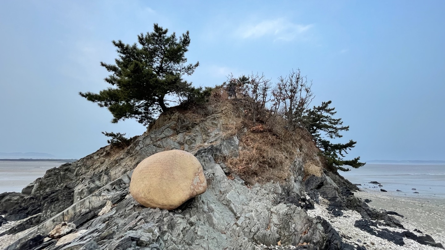 갯벌이 드러나자 어제는 보지 못했던 크고 작은 암석들이 보입니다.