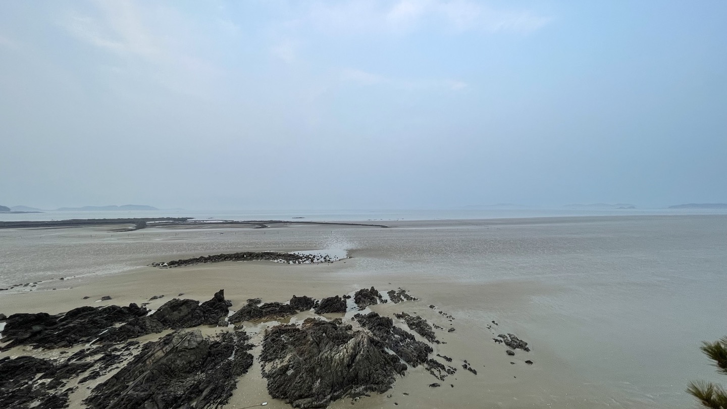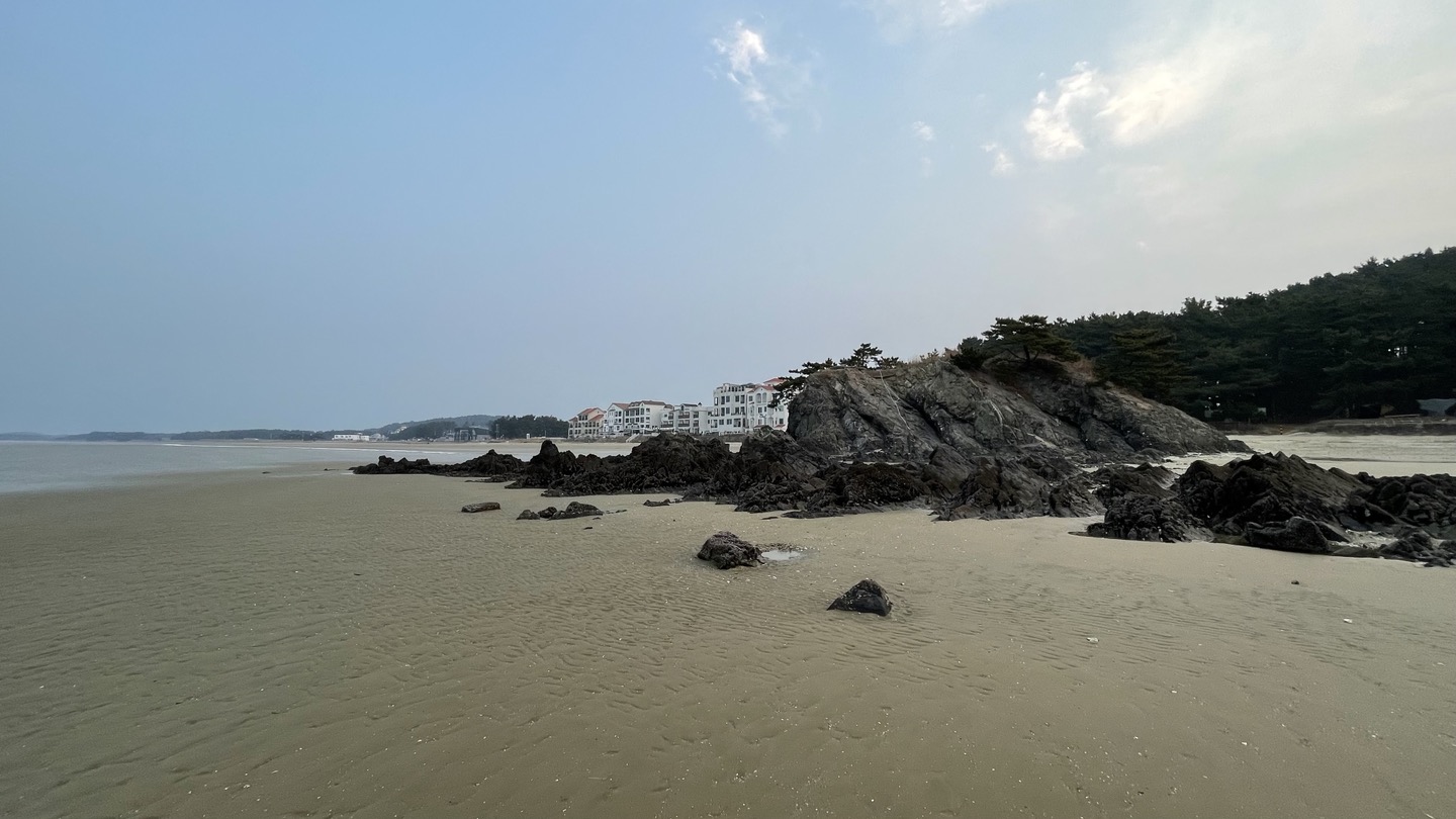 아쉬운대로 아침바다라도 보러 나갔습니다. 밤 사이 물이 많이 빠져 갯벌이 드러나 있었습니다.