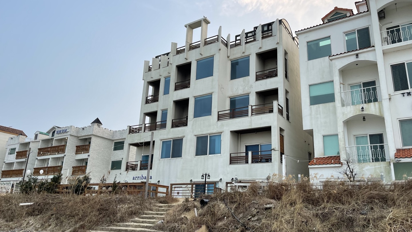 바다쪽에서 바라본 펜션 모습입니다.