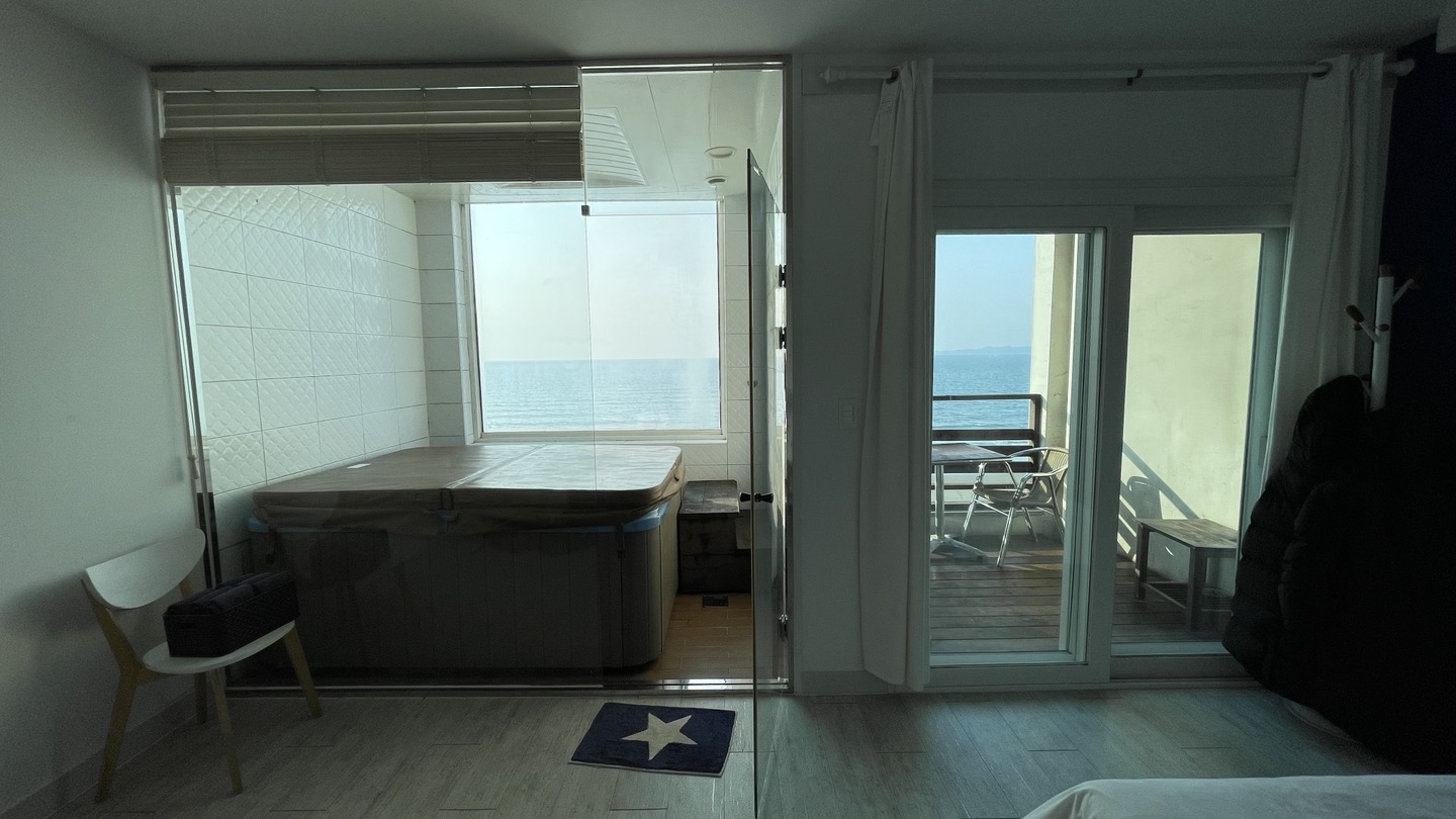창밖으로 바다가 코앞에 보입니다. 뷰가 정말 좋아요.