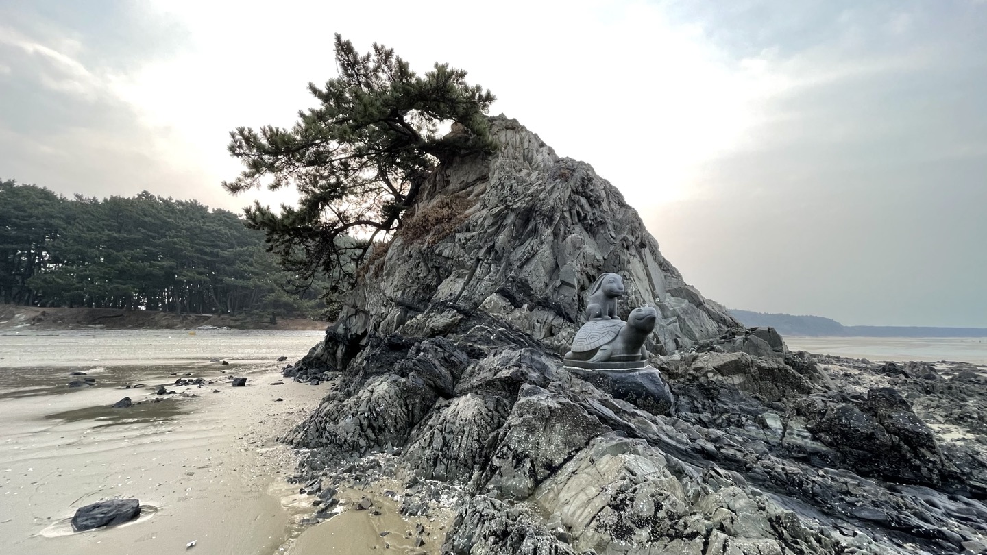 아리바다펜션 바로 앞에 있는 '자라바위'에요. 덕바위라고도 부르네요.