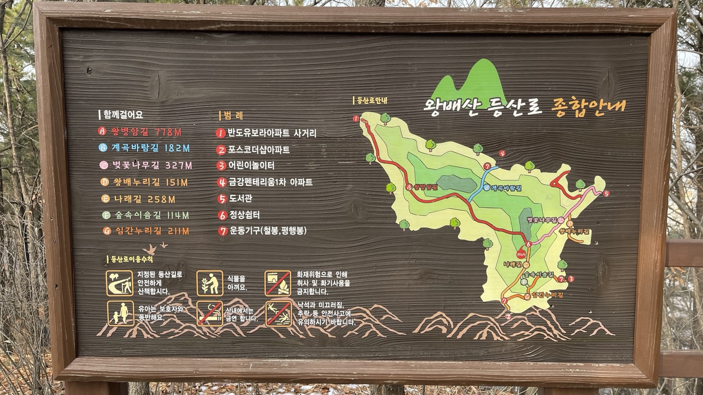 왕배산 등산로 안내도입니다. 왕병암길이 등산로가 좀 긴 편이네요.